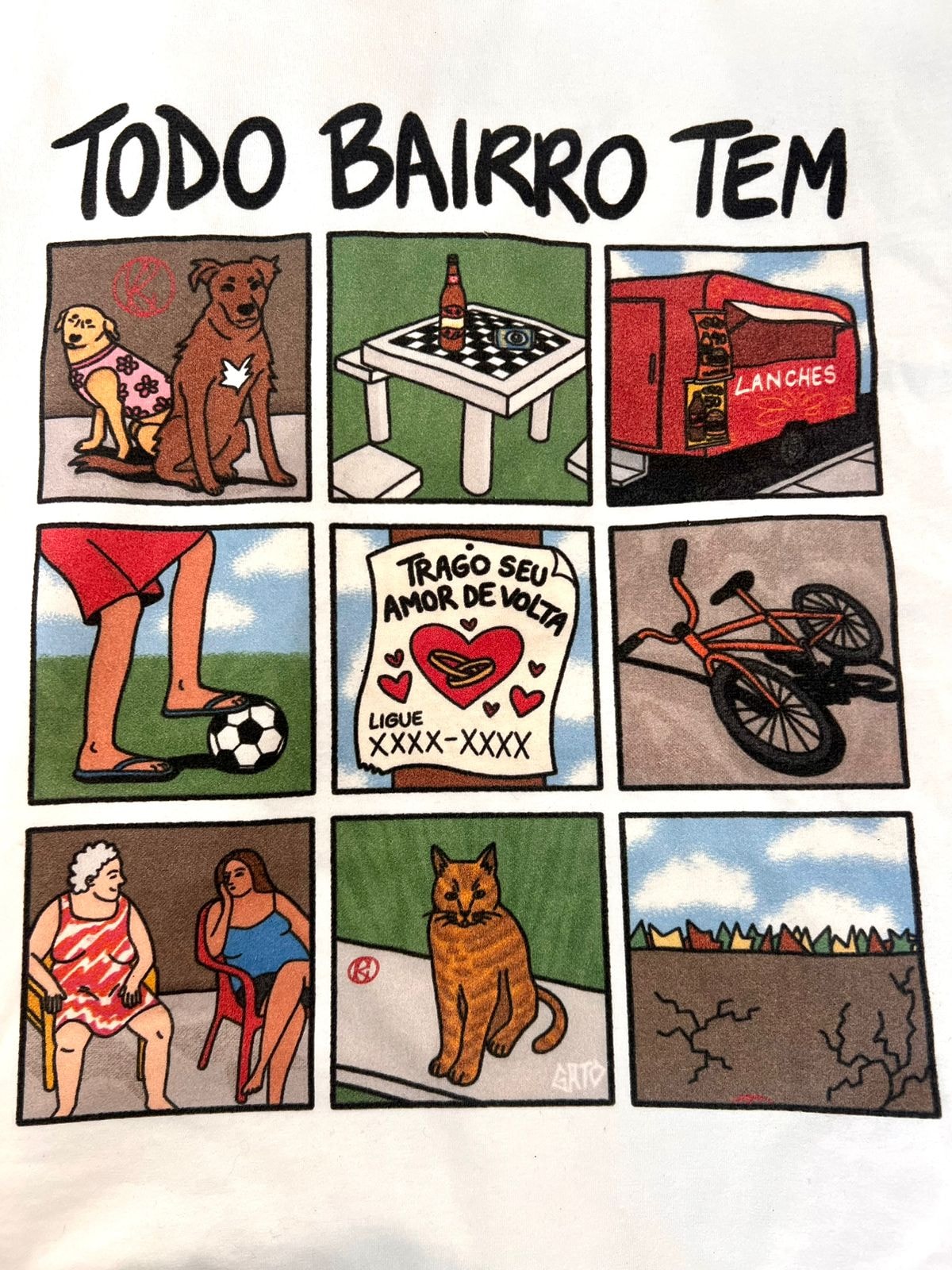 Em qualquer canto do Brasil você encontra: doguinhos caramelo, mesinha de xadrez da praça, o trailer da esquina, meninos jogando futebol, as fofoqueiras do bairro, gatinhos e cacos de vidro no muro.