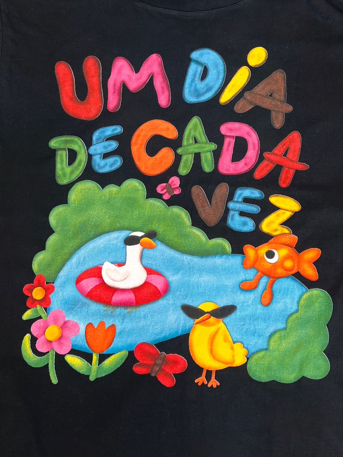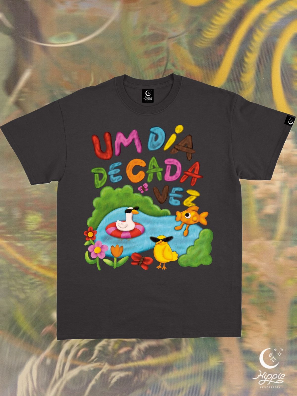 Com a vibe dos anos 90 e um toque de leveza, vamos curtir o momento e aproveitar cada segundo, como o pato e o peixe relaxando no lago.