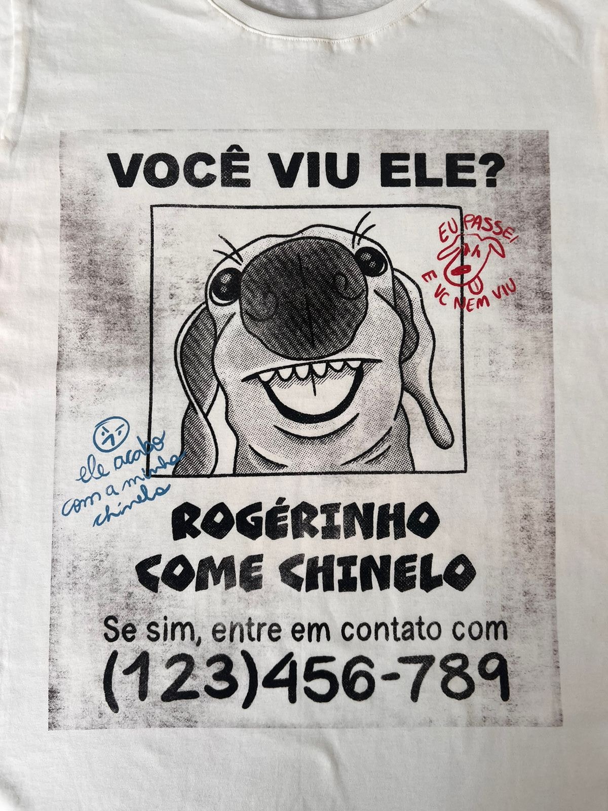 A Camiseta "Você viu ele?" traz uma estampa no estilo procura-se com um cachorrinho irresistível que vai conquistar corações por onde passar.