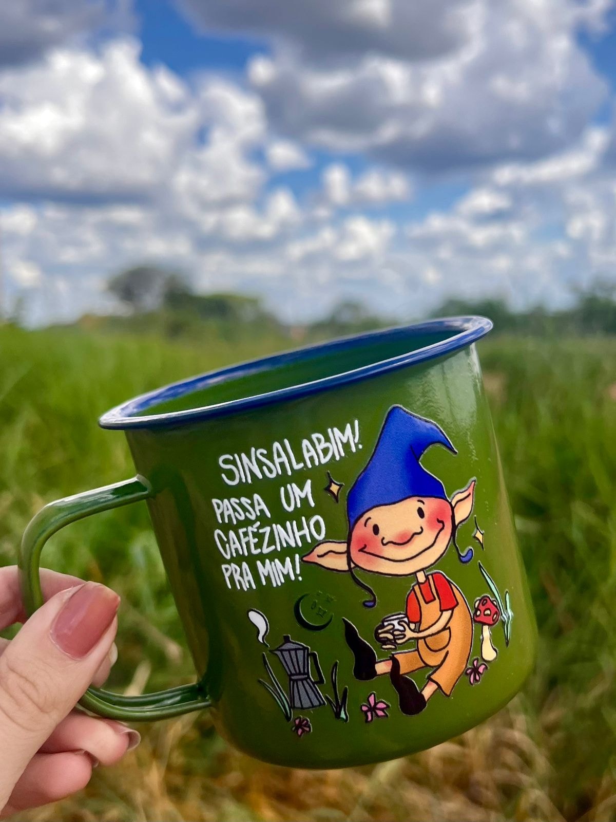 Duendes são seres mágicos e encantados, considerados evoluídos espiritualmente, e vivem em harmonia com a natureza. A caneca Duende Sinsalabim também é uma inspiração para começar o dia com a leveza e tranquilidade desses seres elementais.