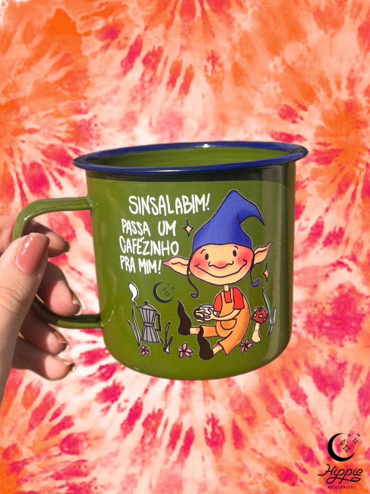 Xícara de aço esmaltado. Estampa em alta qualidade, exclusiva da Hippie :)