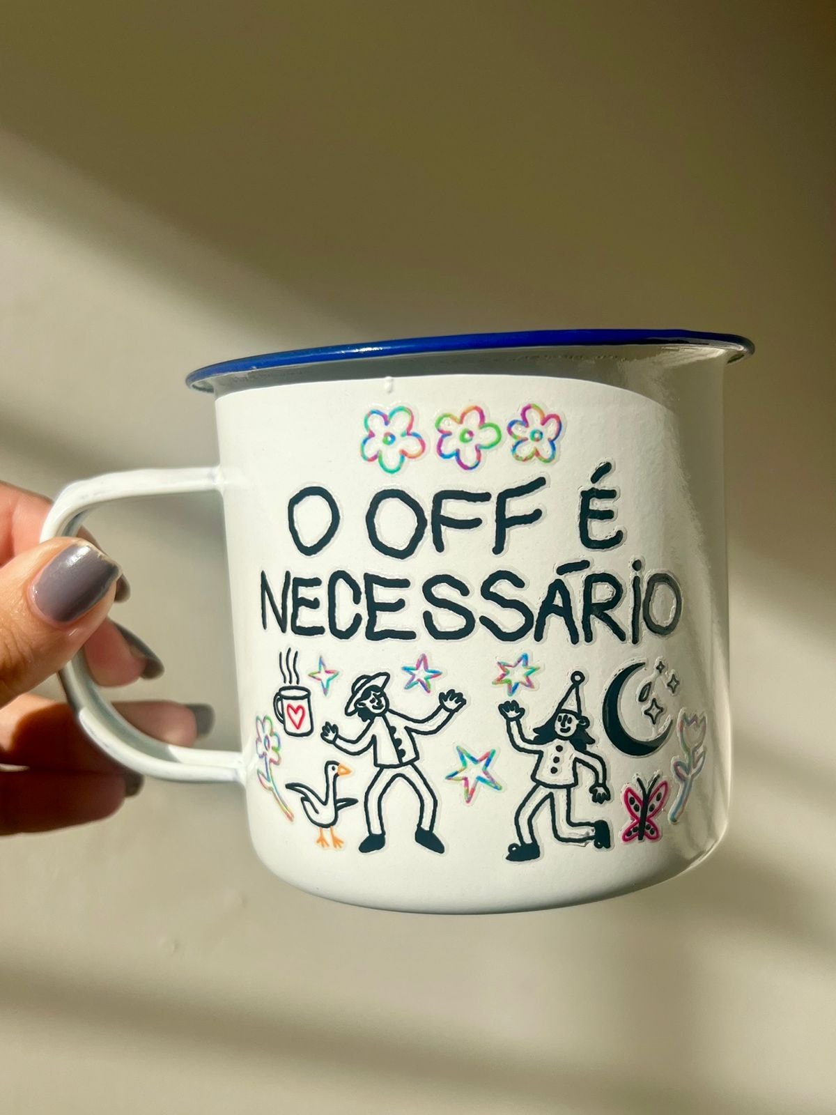 Caneca de metal esmaltada. Estampa em alta qualidade, exclusiva da Hippie :)