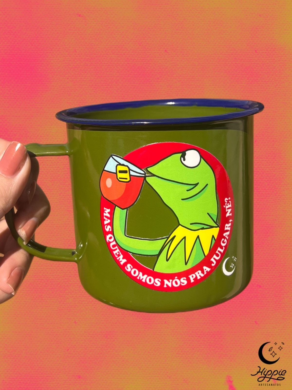 Caneca de metal esmaltado. Estampa em alta qualidade, exclusiva da Hippie :)