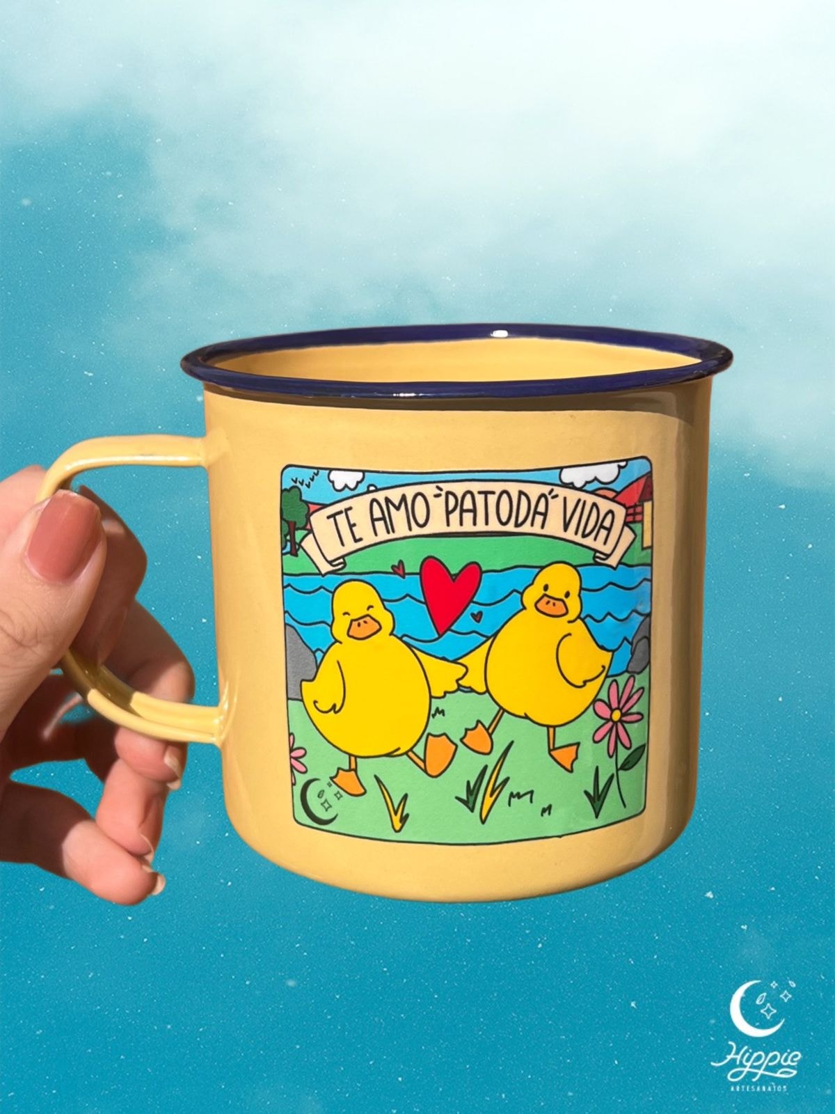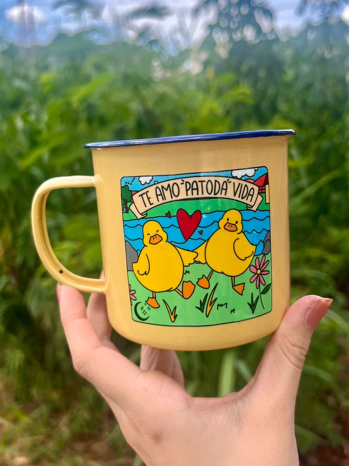 Xícara de aço esmaltado. Estampa em alta qualidade, exclusiva da Hippie :)