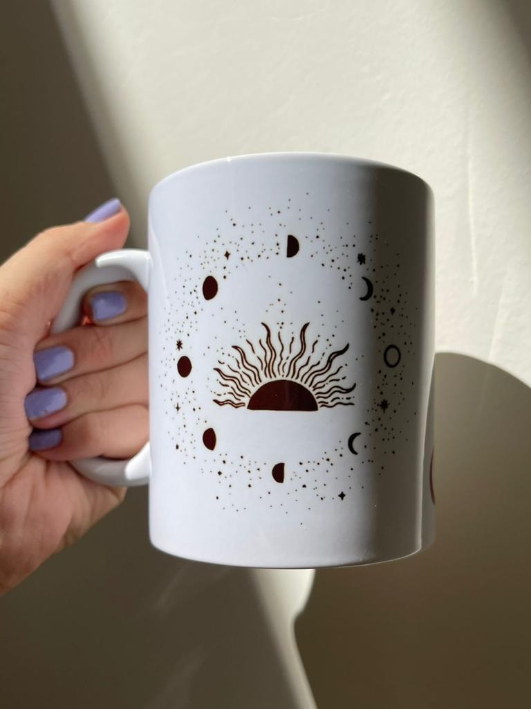 O Sol é o principal astro do sistema solar. Sua luz dá calor e energia à Terra, sendo fundamental para a existência de vida e da continuidade dos ciclos naturais. Simbolicamente, o Sol representa poder, vitalidade e autoconfiança. Reflete atributos de inteligência cósmica e expansão de consciência. A caneca Astro Rei foi pensado para atrair a energia das propriedades do Sol em sua vida.