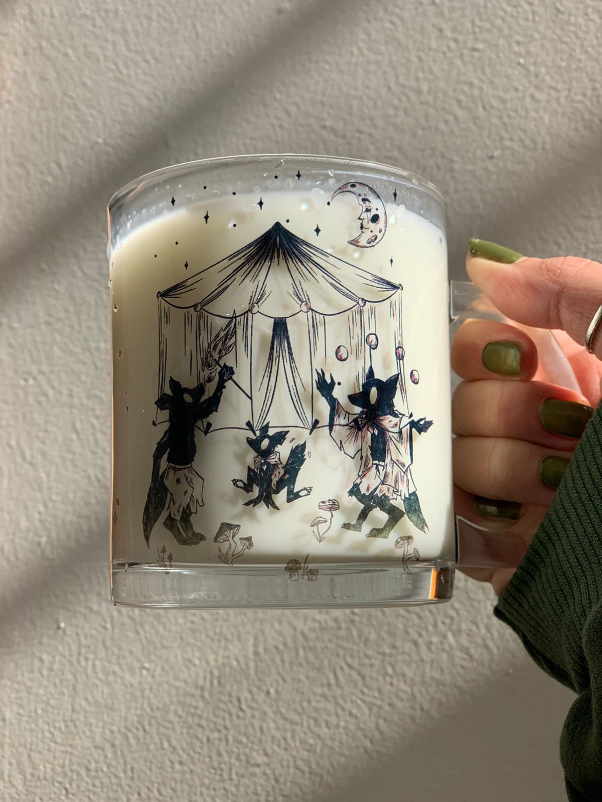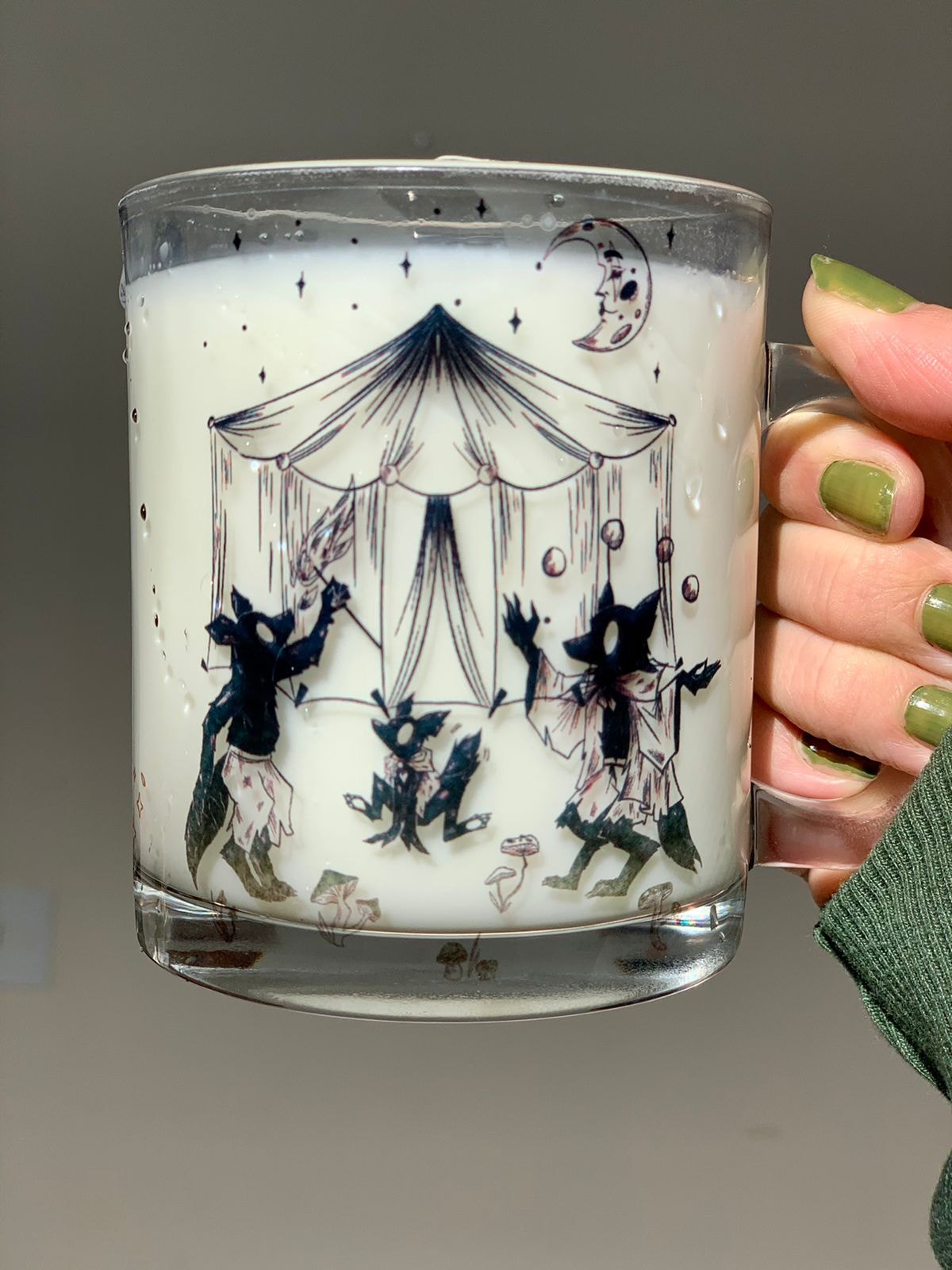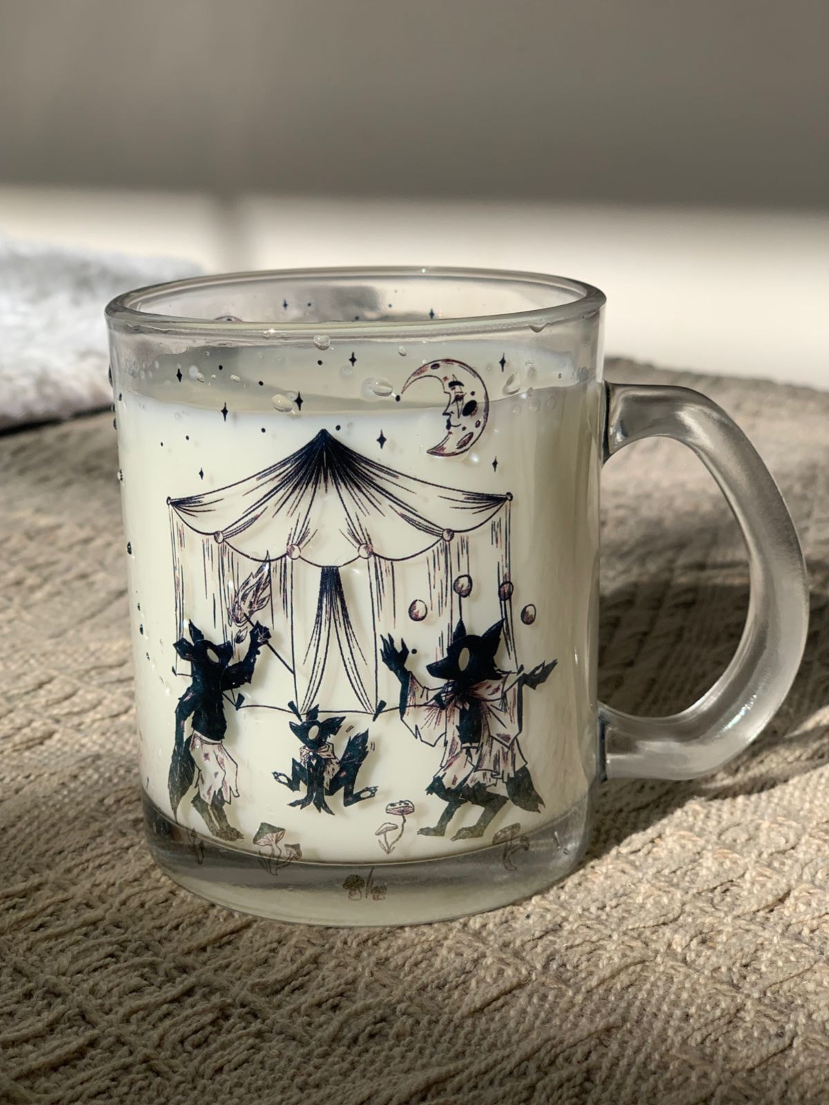 Alguns dizem que lobisomens foram amaldiçoados, outros que fizeram pacto com forças do mal, mas nessa caneca eles estão bem alegres, dançantes e celebrativos.