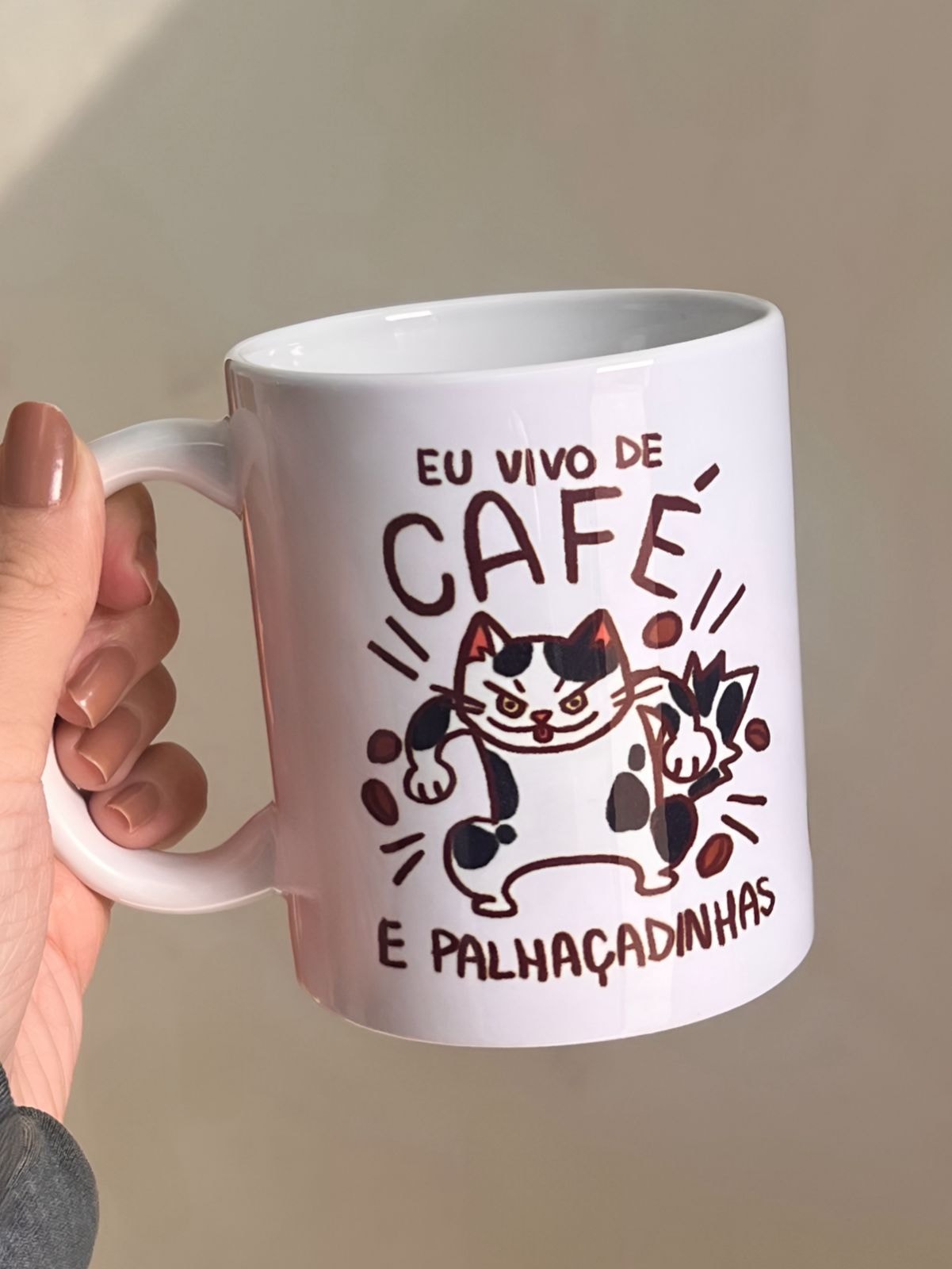 Se você também é movido a cafeína e um leve toque de caos, essa caneca é a sua alma gêmea. Ideal pra quem encara o dia com um gole de café numa mão e uma boa dose de palhaçadinha na outra (afinal, a vida já é séria demais, né?).