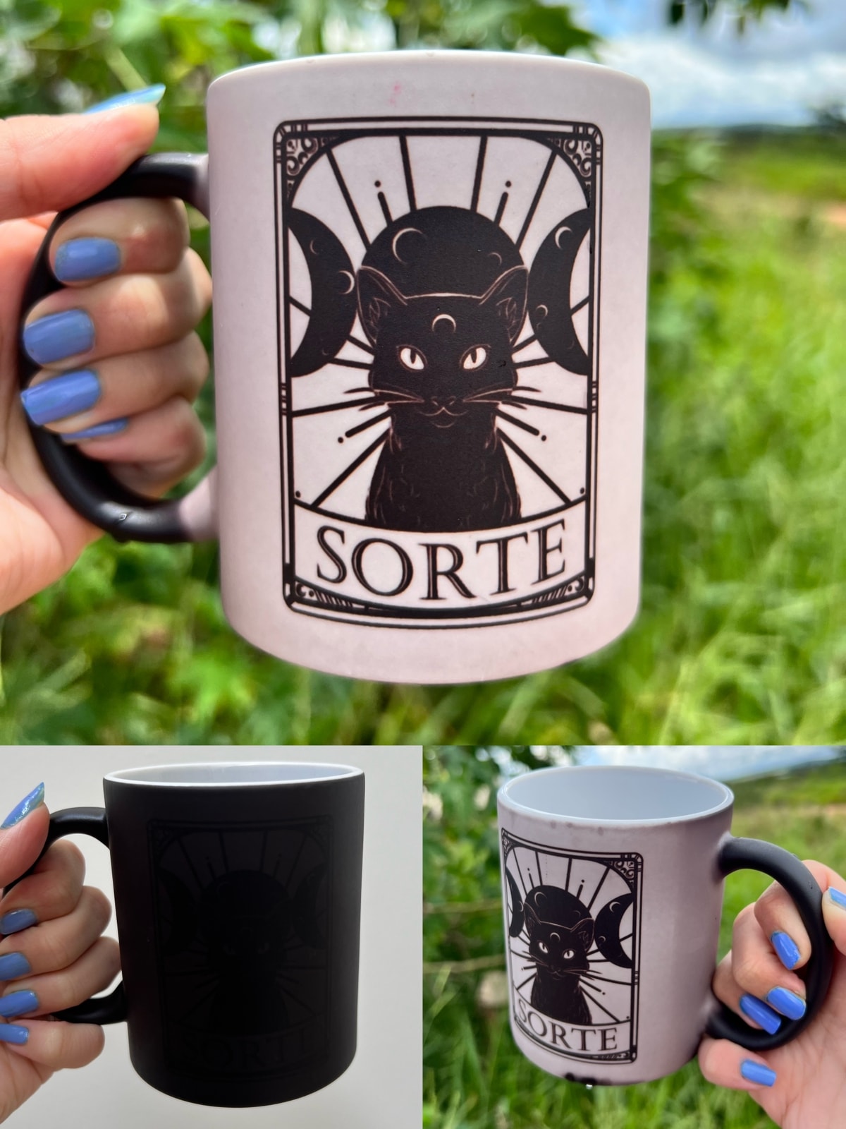 Caneca mágica! A arte só é revelada depois da caneca entrar em contato com líquido quente.