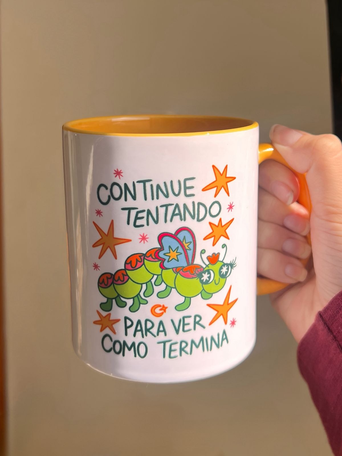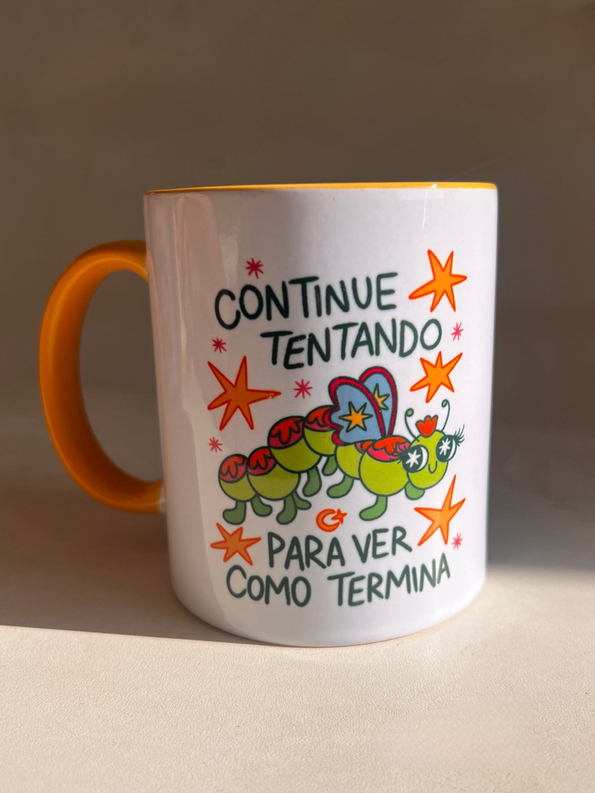Caneca Lagarta continue tentando - Alça Amarela - 325ml