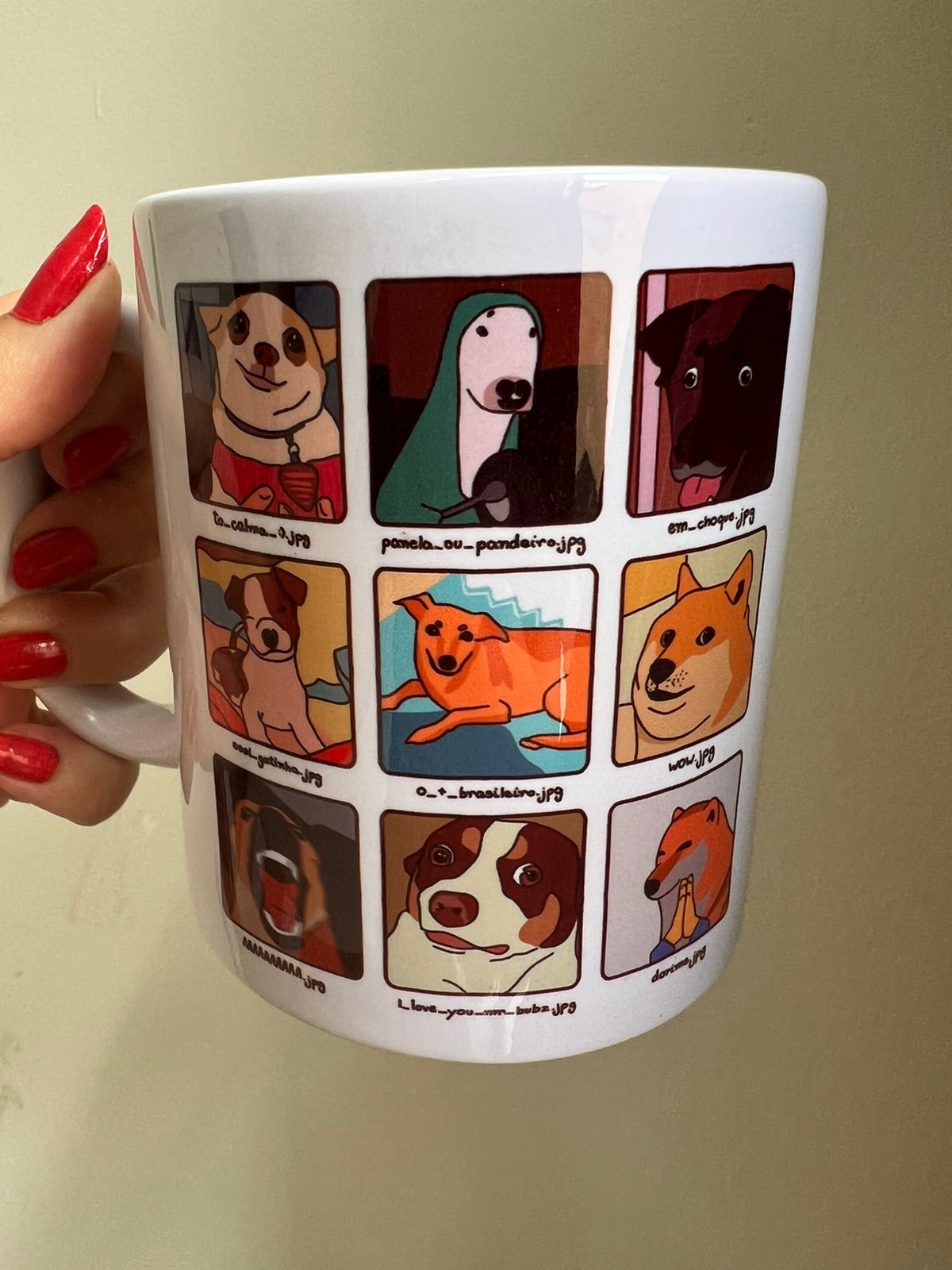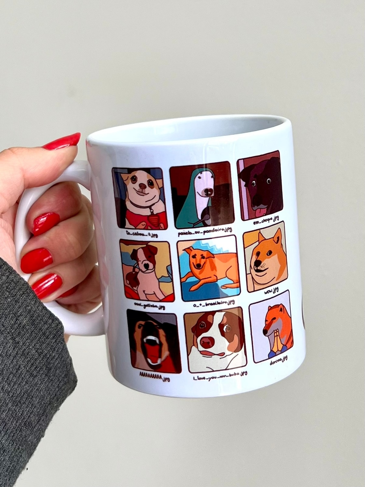A caneca Memes de Cachorro celebra com muito bom humor nossos companheiros e deixa as manhãs mais divertidas.
