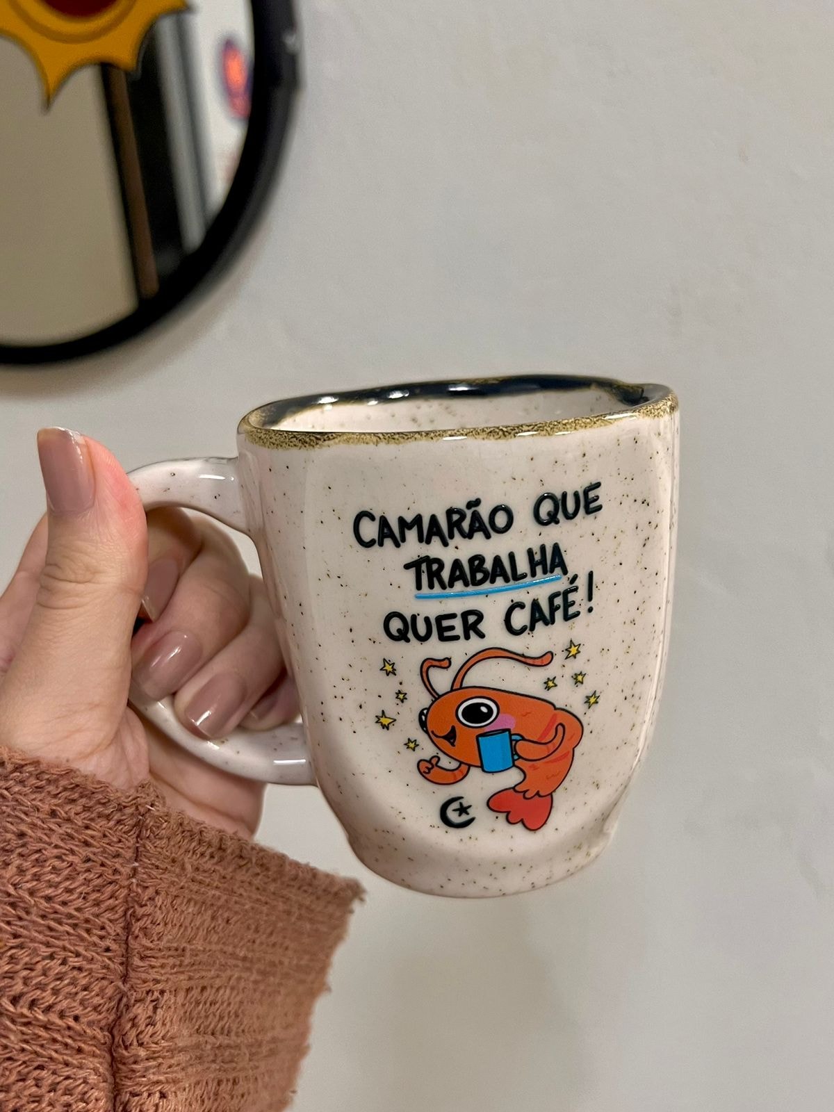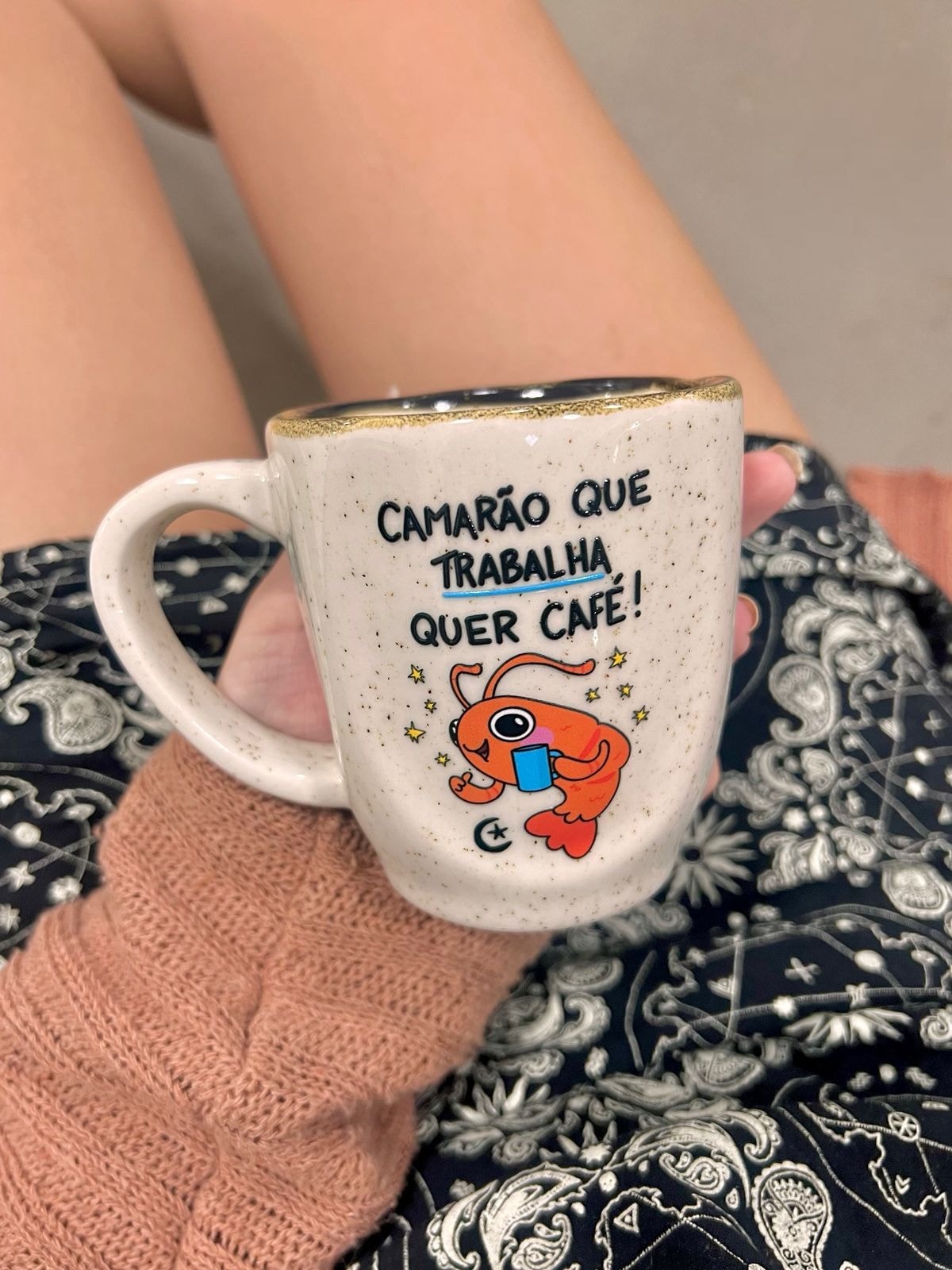 Caneca Névoa - Camarões que trabalham querem café - 260ml