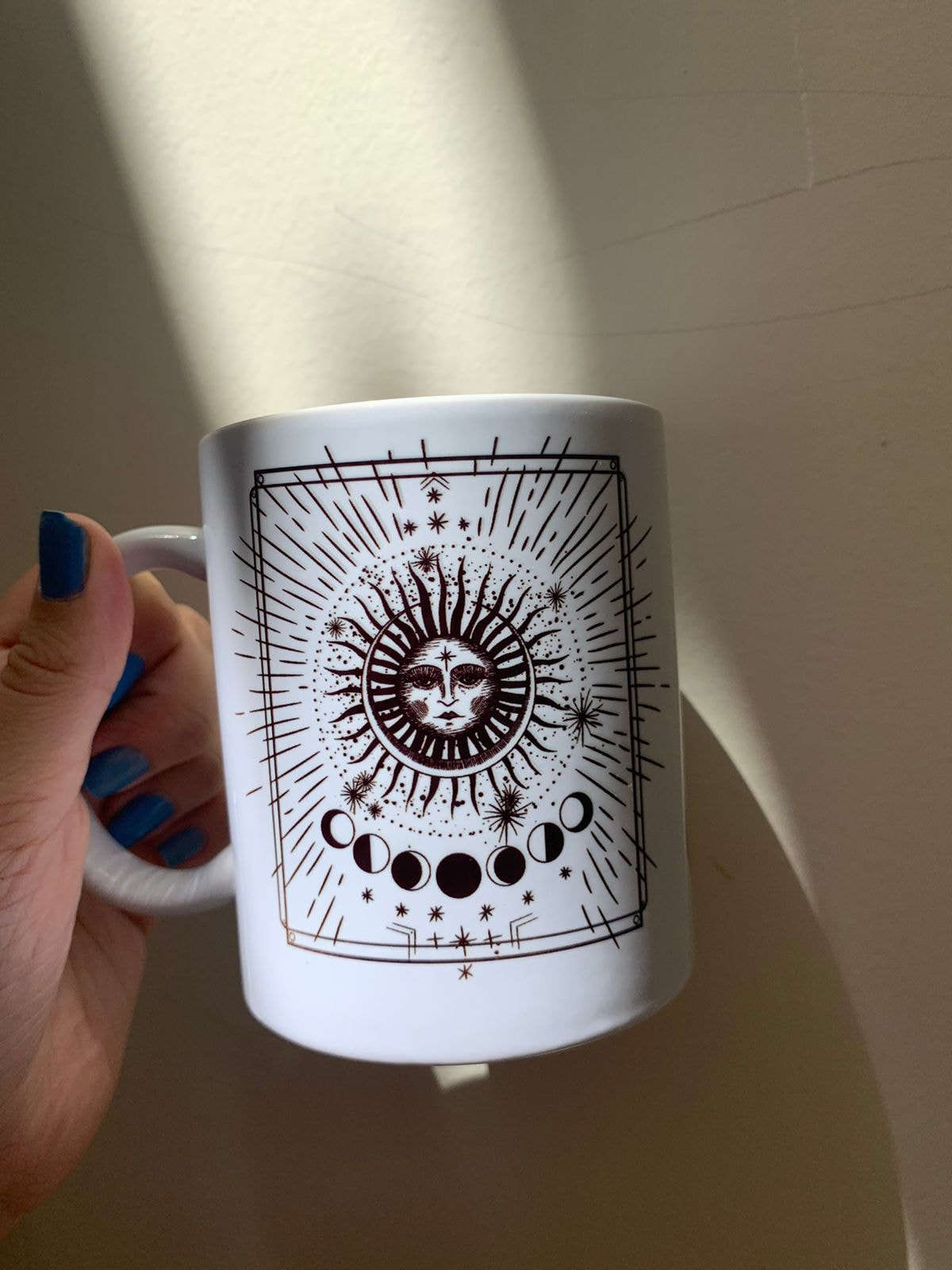 A caneca Solar foi feita para que sua vida flua como a energia do sol: com vitalidade, potência e força. O sol é um astro associado ao autoconhecimento. Por ser uma estrela que irradia e ilumina, ensina a olhar para si de forma consciente e acreditar em tudo que é capaz.