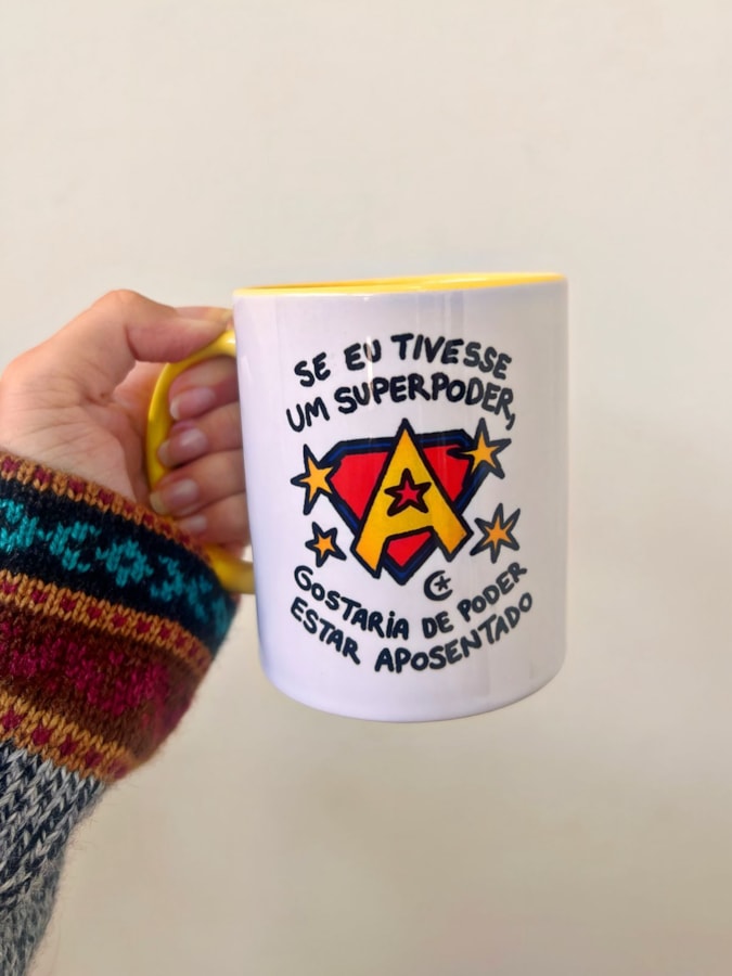 Caneca Super Aposentado - Alça Amarela - 325ml