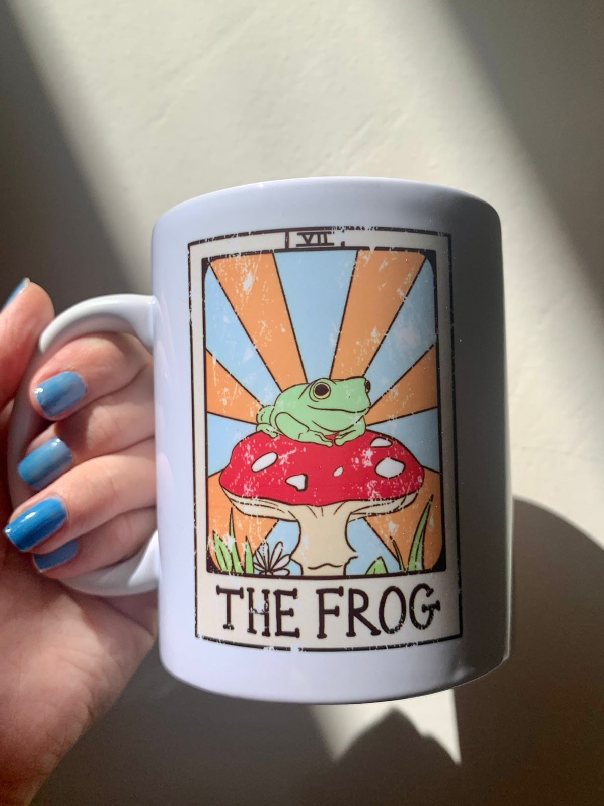 The frog: O sapo. Em diversas culturas o sapo é considerado um animal de poder. Ele representa a purificação, sendo visto como um grande curandeiro. Por ter ligação com o elemento água, o sapo possui a virtude de dar fluidez às nossas emoções. Quando o sapo chega, é para te dizer que é momento de sublimar qualquer água pantanosa que tenha dentro de si, tornando as emoções límpidas novamente.