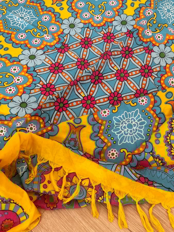 Atenção: as cangas tem um processo de tingimento artesanal, algumas manchinhas podem ocorrer, pois é o estilo delas.