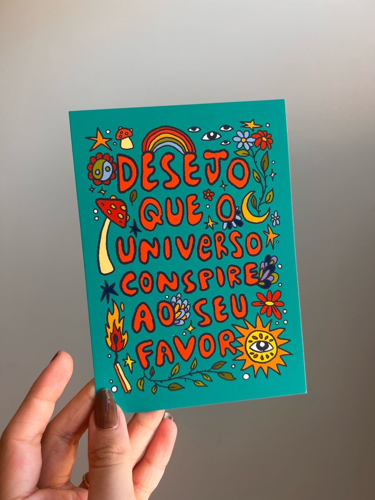 O cartão Desejo Que O Universo Conspire Ao Seu Favor é uma forma bonita de desejar caminhos abertos e otimistas para alguém especial.