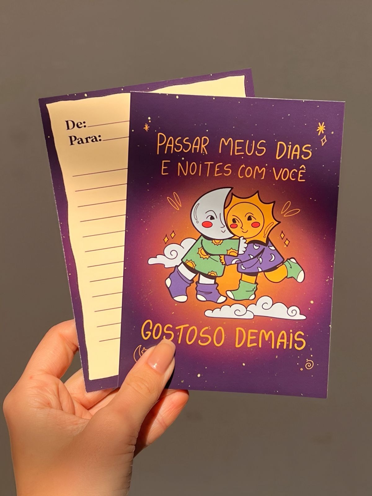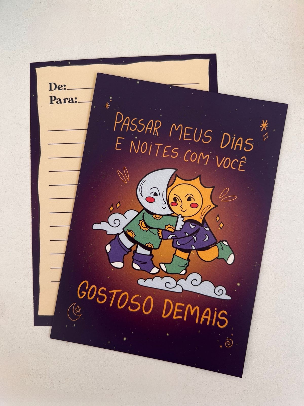 Cartão com linhas no verso para mensagem especial <3 Material: Papel couchê. Medidas: 14,5cm x 10,5cm.
