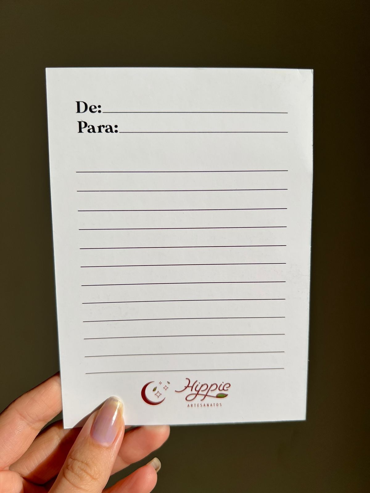 Cartão com linhas no verso para mensagem especial <3
