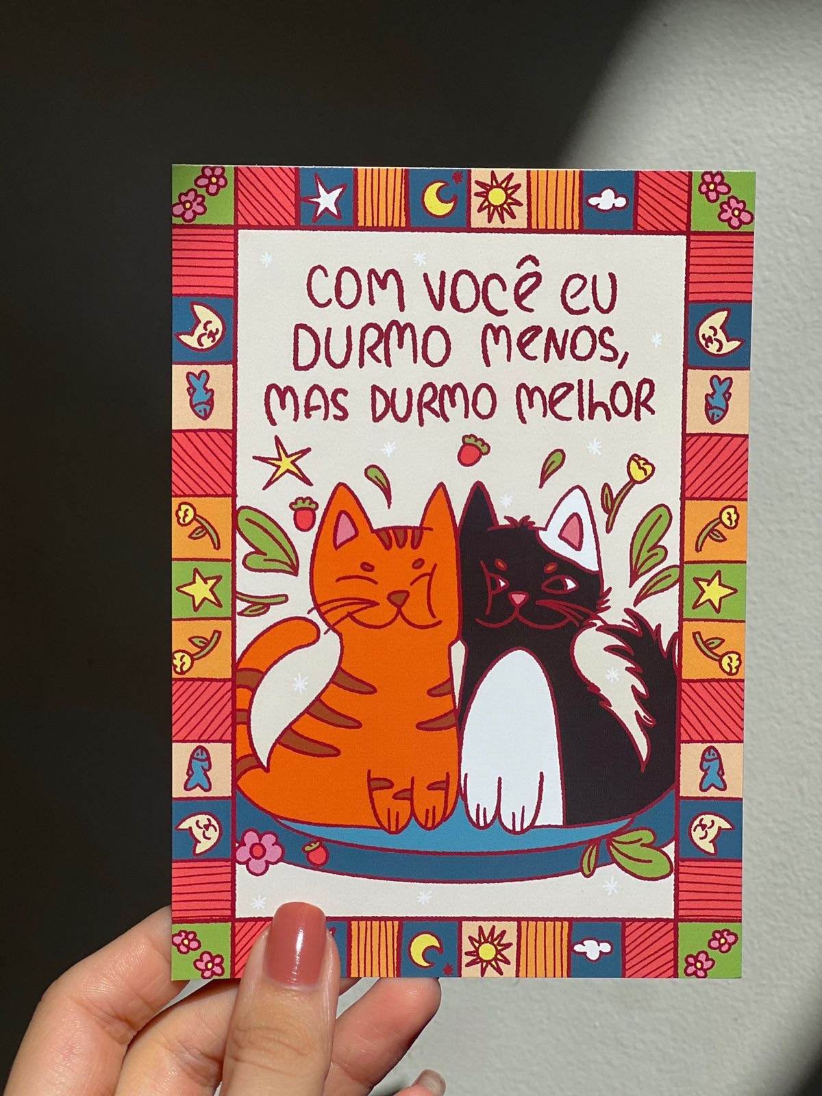 Às vezes, nas relações, precisamos abrir mão de algumas coisas. Por exemplo: deixar de dormir muito para dormir melhor :) O cartão Gatinhos que Dormem Pouco é uma declaração de amor, uma forma de demonstrar que sua vida é melhor com a presença dessa pessoa e que todo esforço vale a pena por essa relação <3 Presentear com um cartão é uma forma linda de eternizar um sentimento profundo.