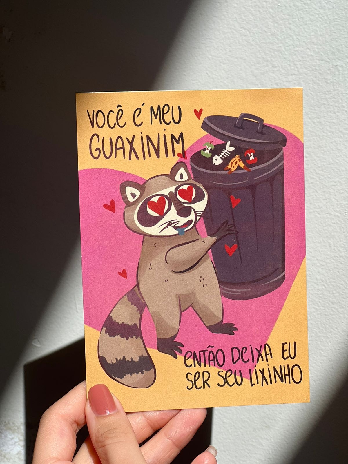 Guaxinins têm uma relação intensa de amor com latas de lixo. Nelas, eles encontram tudo o que precisam, são como potes de ouro, tesouros escondidos. Vivem atrás de latas de lixo e fazem de tudo para conseguir entrar em uma. Queria ser para você o que as latas de lixo são para os guaxinins. Você já é meu guaxinim, deixa eu ser seu lixinho? <3