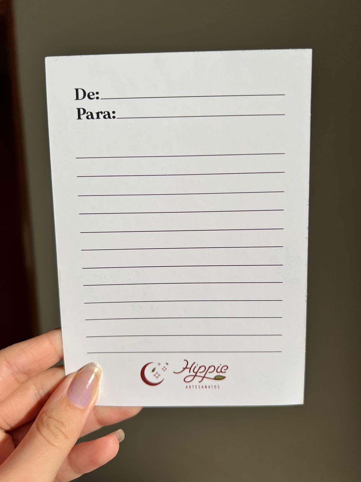 Cartão com linhas no verso para mensagem especial <3