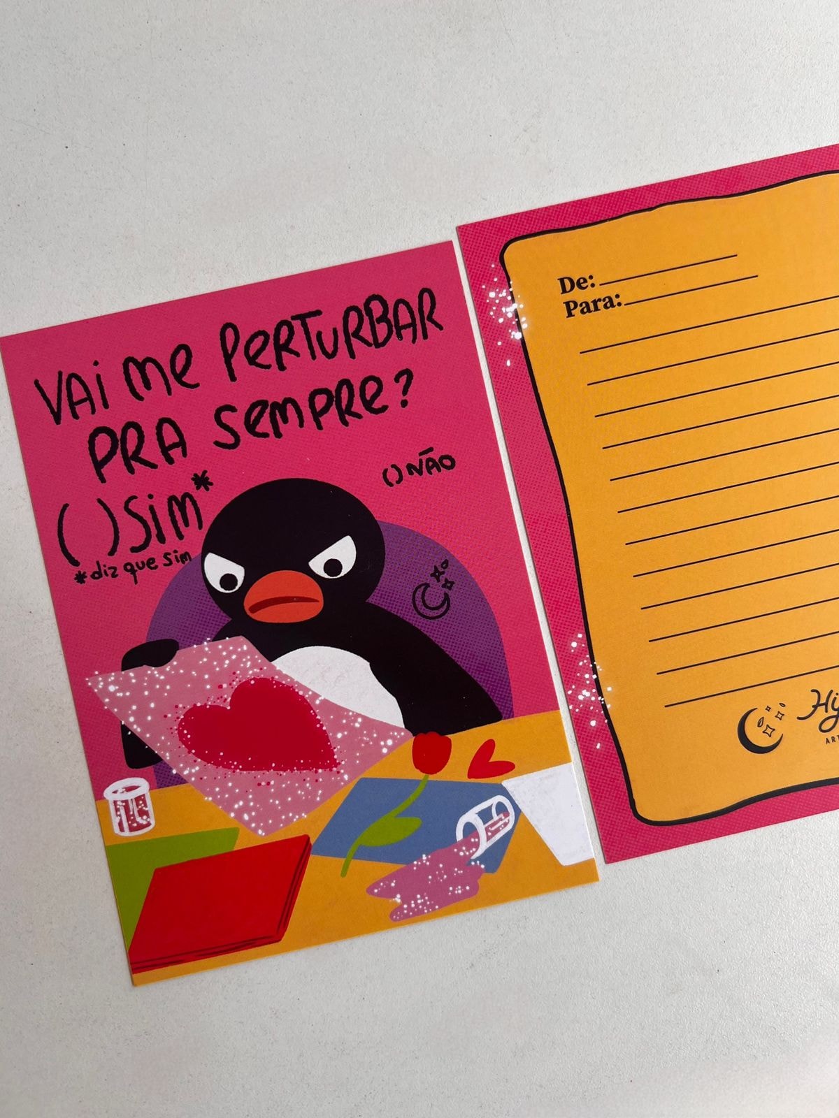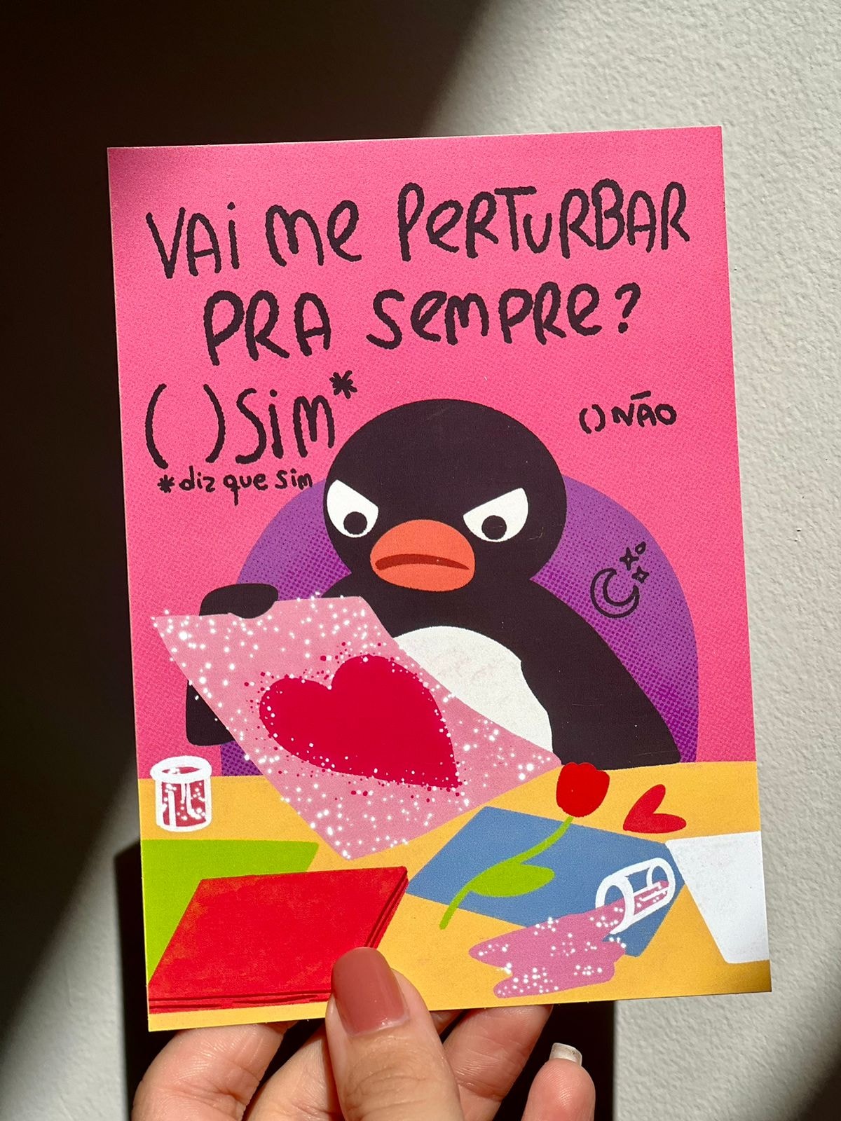 O cartão Pingo Você vai me perturbar pra sempre? é perfeito para fazer uma surpresa para a pessoa amada, principalmente se ela tiver como Linguagem de Amor a encheção de saco <3 Você se irrita mas não vive sem, né?