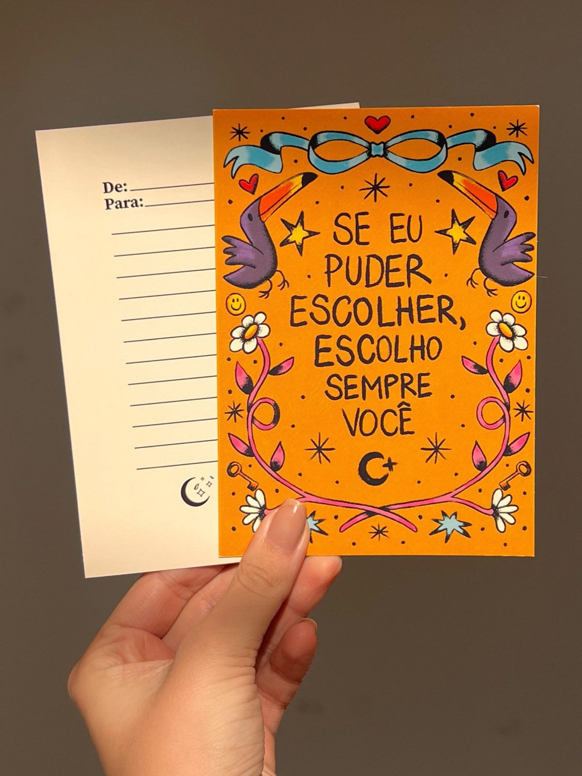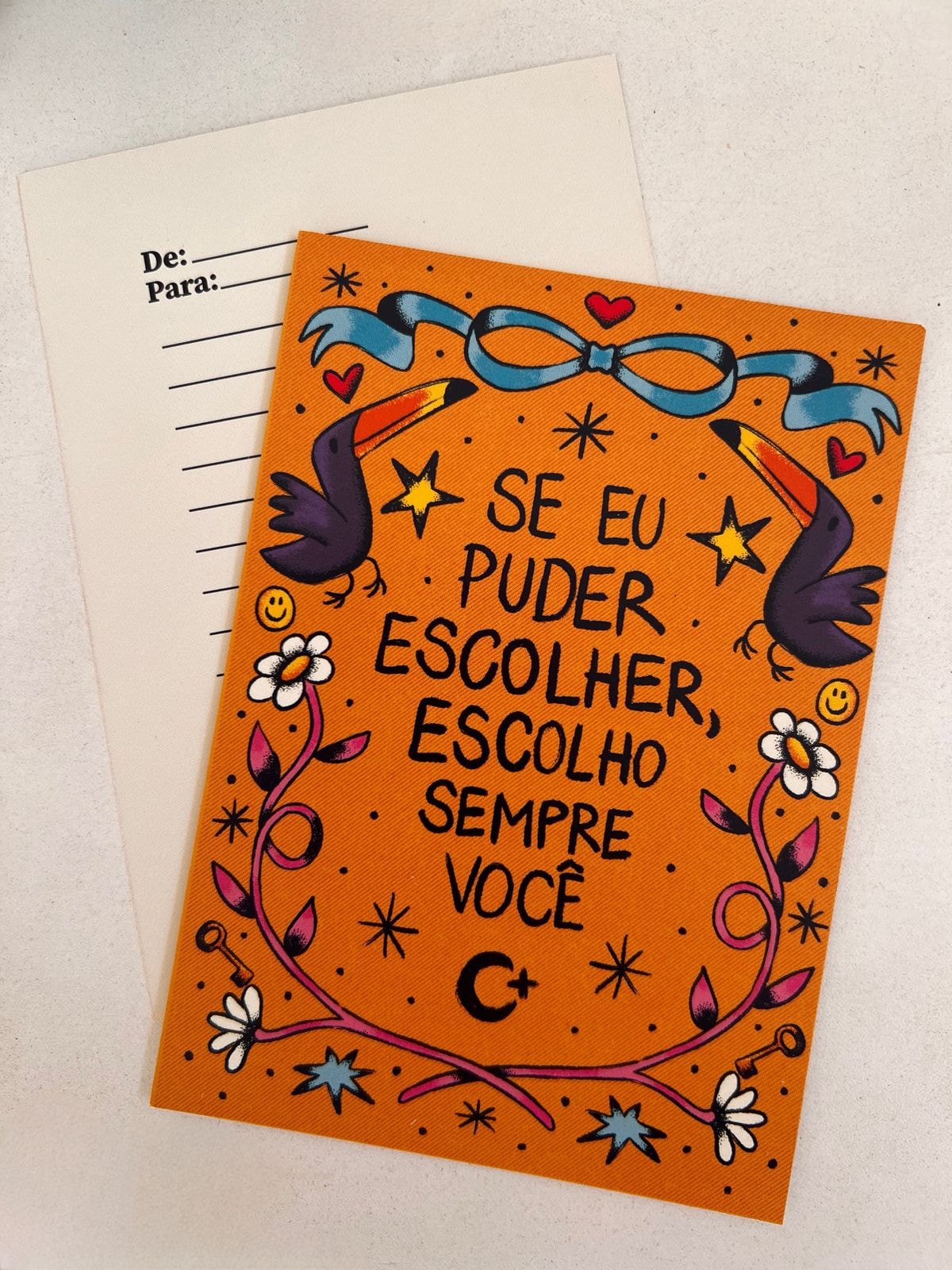 Cartão com linhas no verso para mensagem especial <3 Material: Papel couchê. Medidas: 14,5cm x 10,5cm.