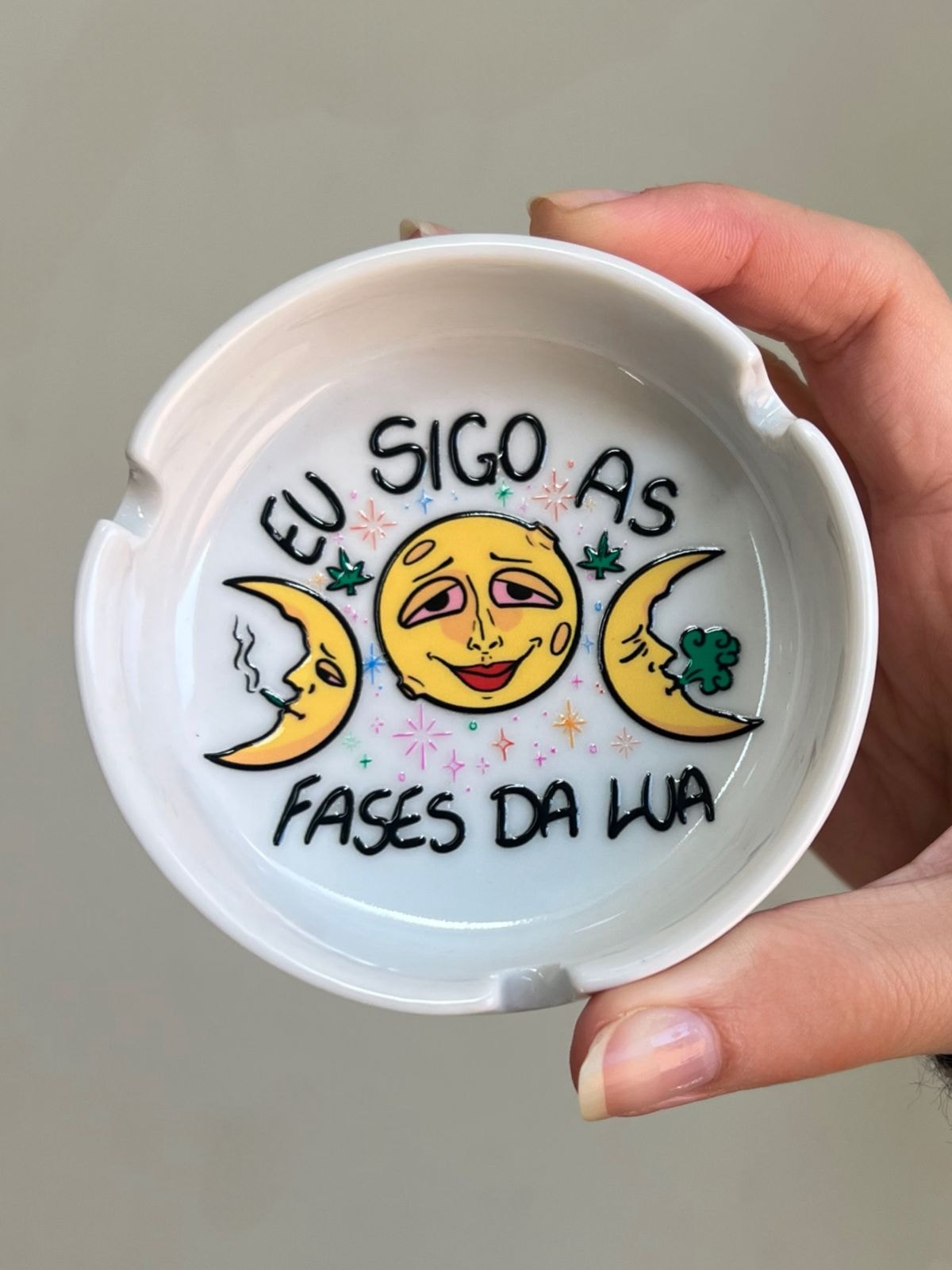 Cinzeiro de Porcelana resistente com estampa exclusiva da Hippie em DTF UV.