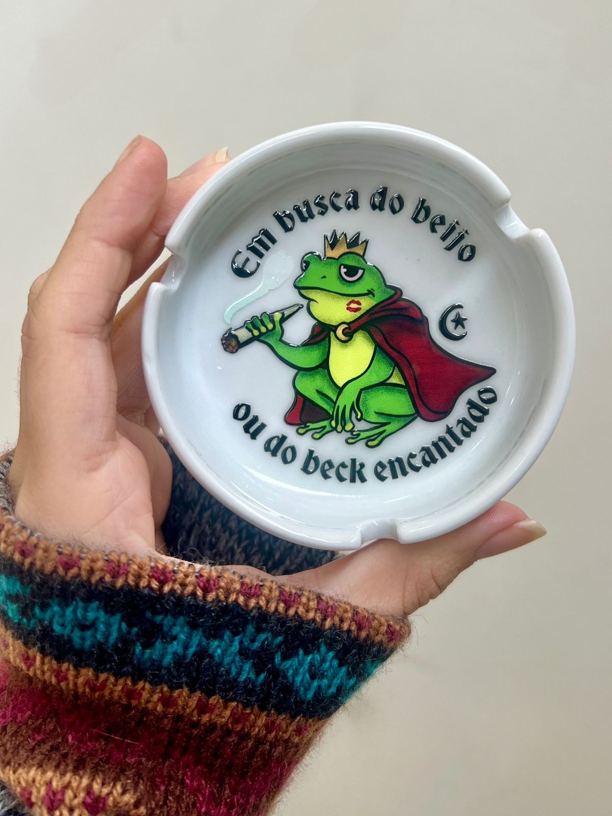 Cinzeiro de Porcelana resistente com estampa exclusiva da Hippie em DTF UV.