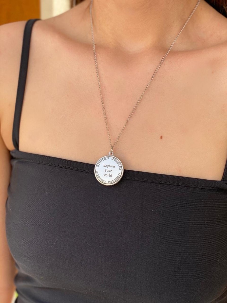 Colar com gravação frente e verso e desenho em 3D. Resistente a oxidação. Recomendamos não molhar.