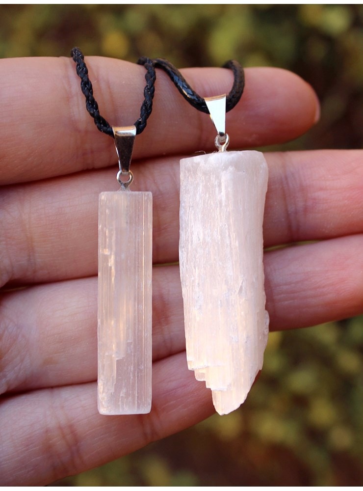 Com o colar Selenita Bruta, você terá a força desta pedra sempre com você. Este mineral trabalha os chakras transpessoais (acima da cabeça). Por isso, usar a selenita como um colar, posicionada próxima a esses chakras, é a forma ideal de receber a purificação deste cristal.