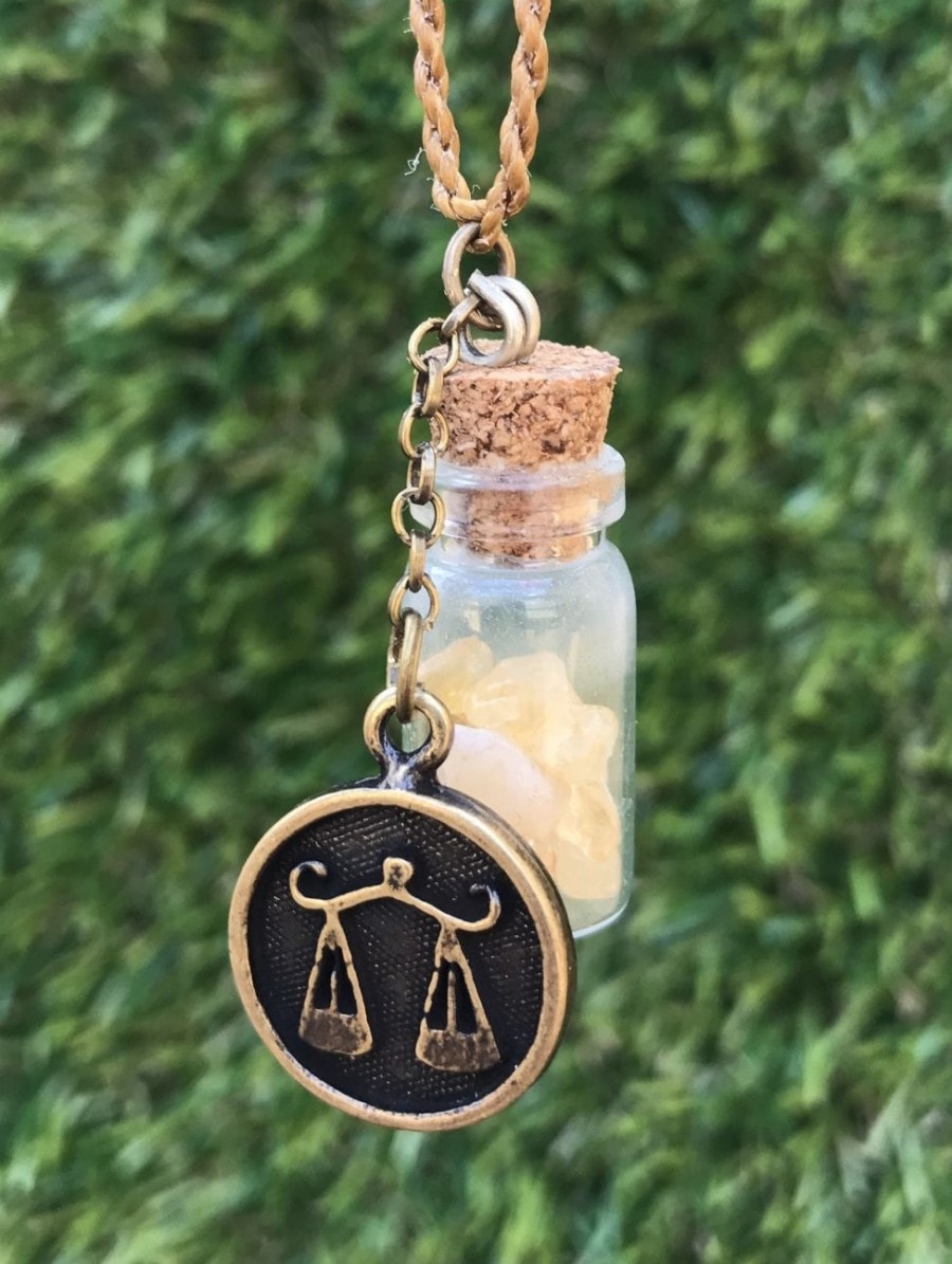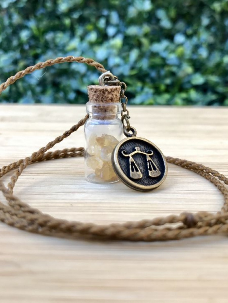 Colar artesanal do signo Libra com Citrino. Cordão trançado à mão e domo montado à mão.