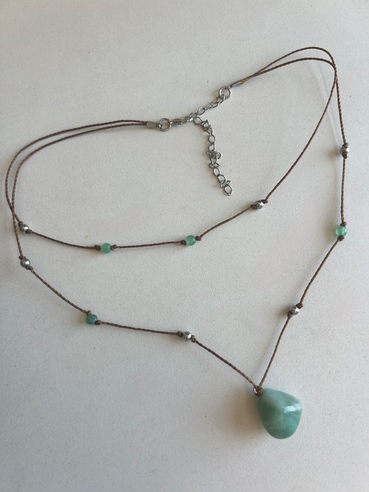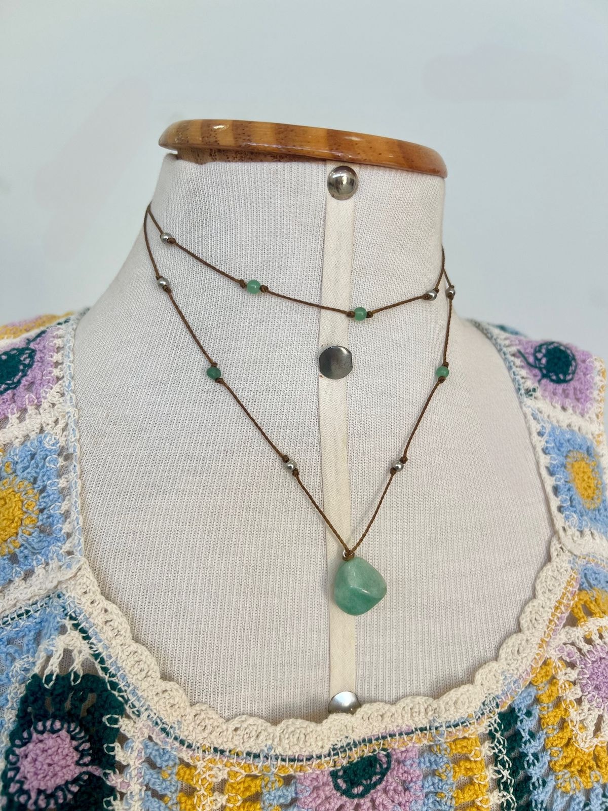 Materiais: Quartzo Verde, pingente de 2cm. Cordão 35cm + extensor de 8cm.