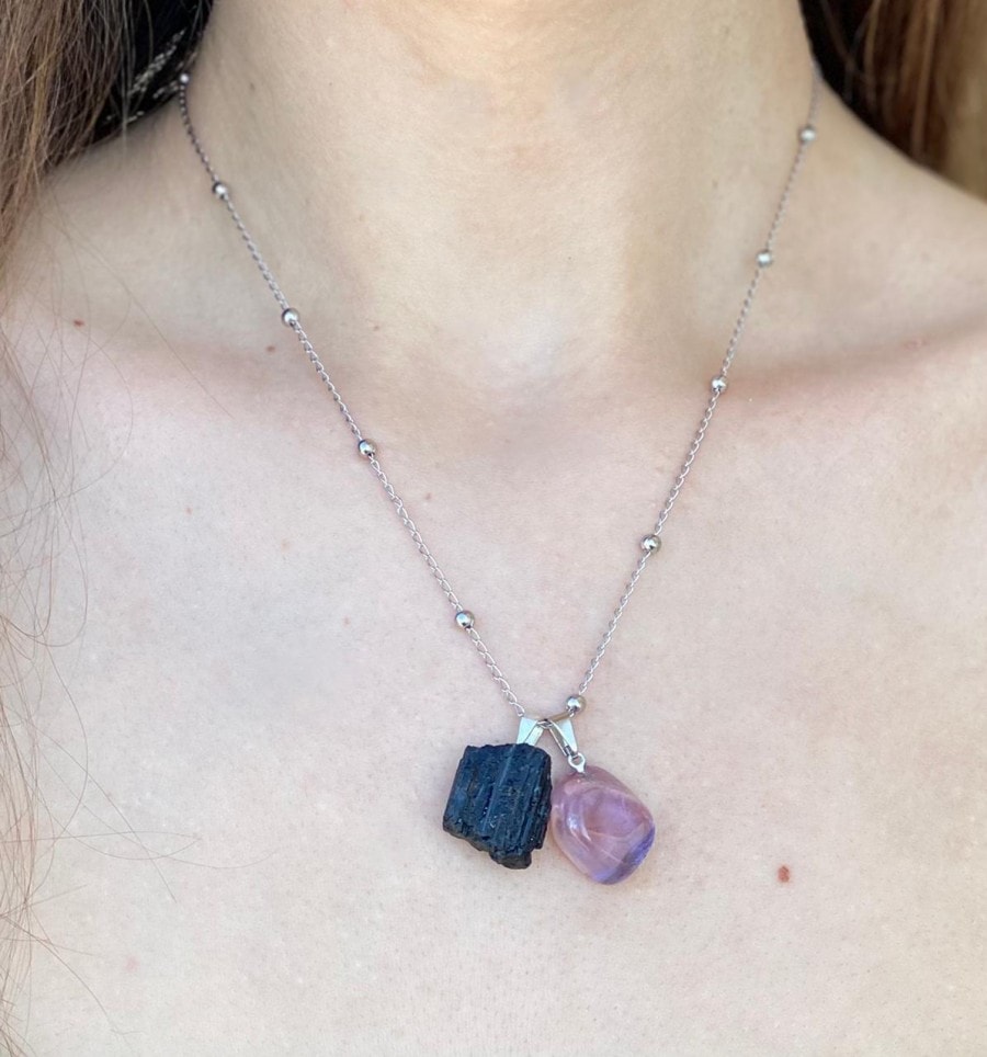 Colar Espiritualidade e Proteção - Ametista e Turmalina