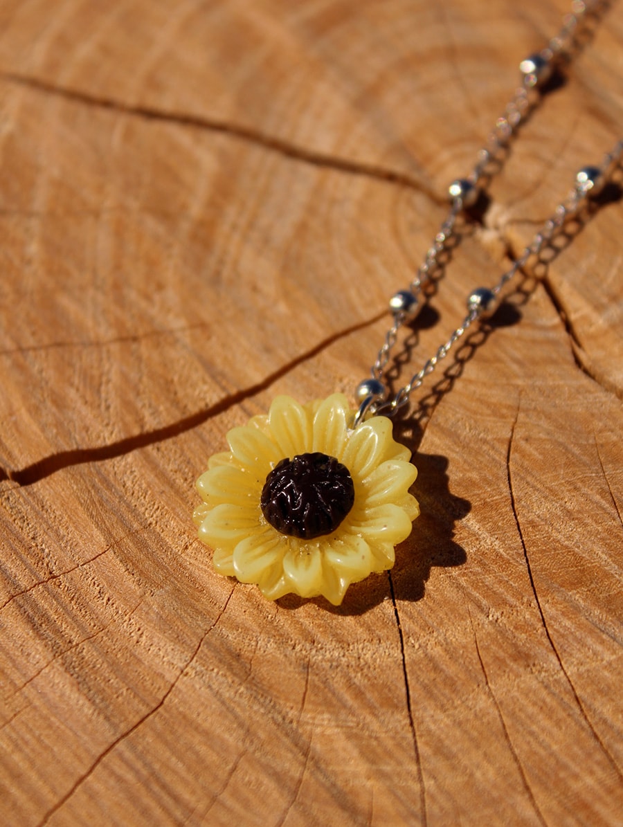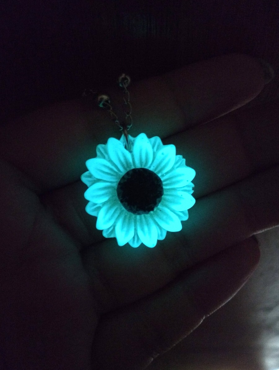 Colar artesanal com pingente Girassol fosforescente.