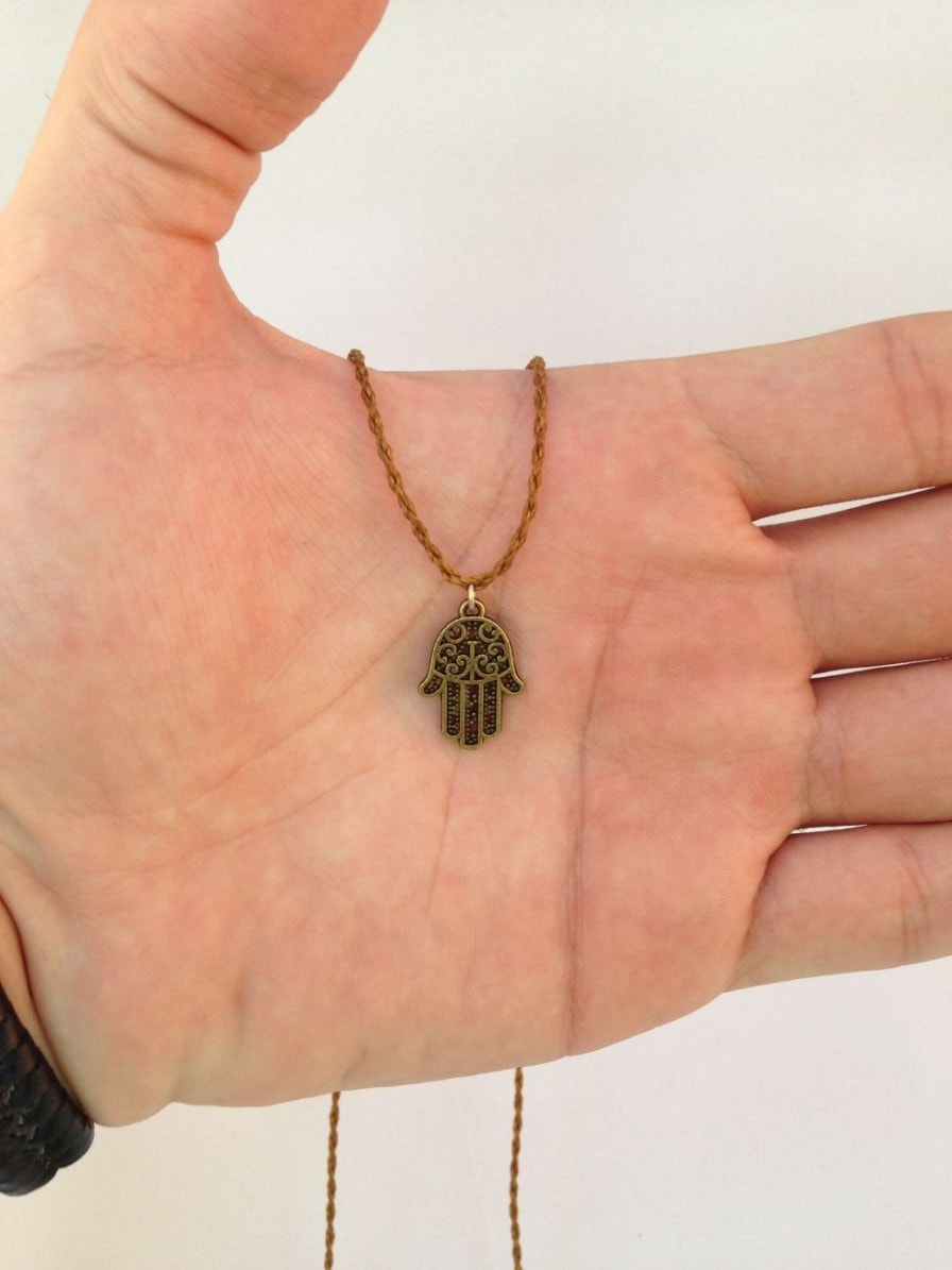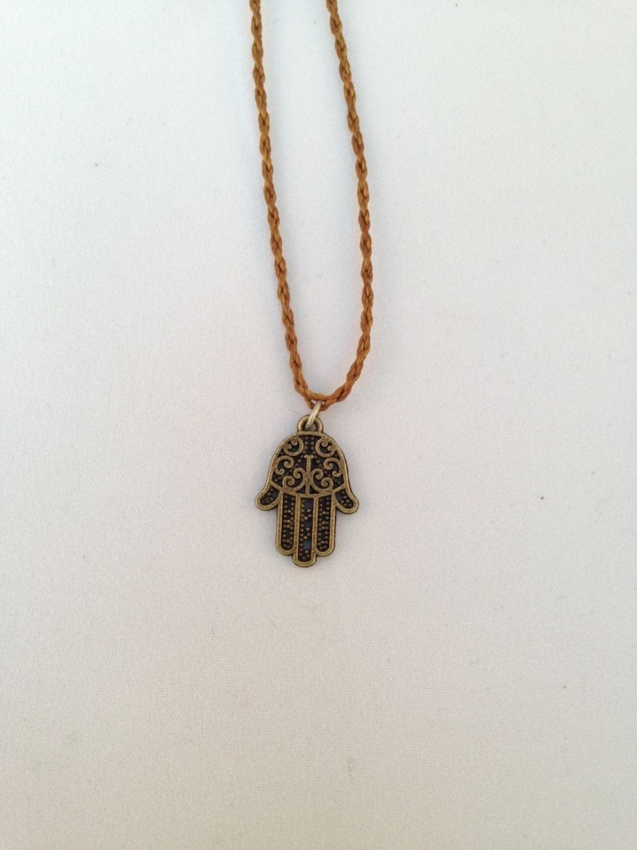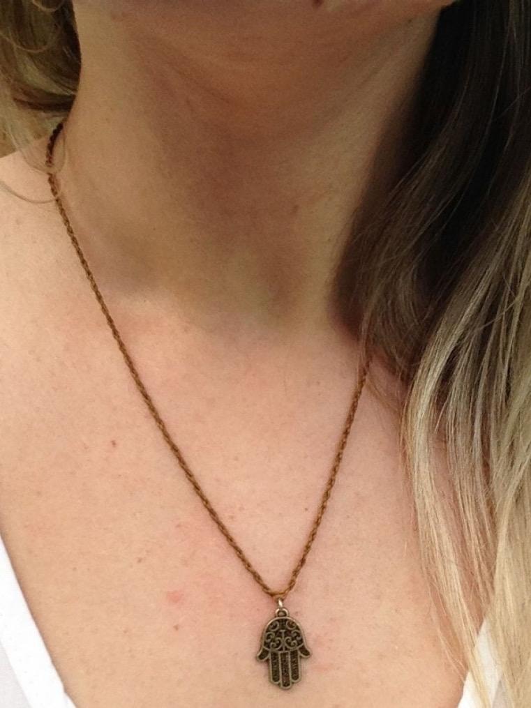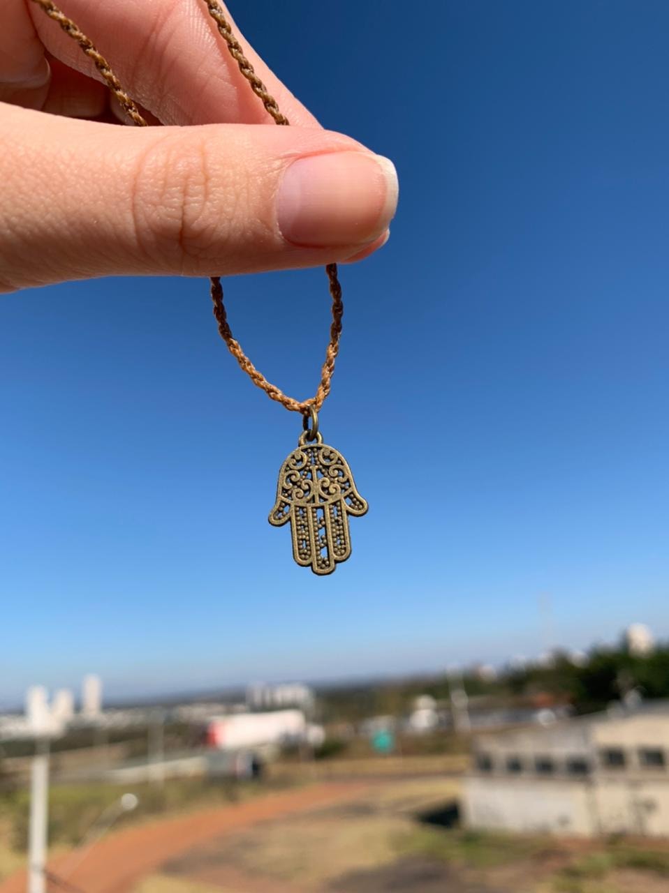 Colar artesanal com pingente Hamsá. Cordão trançado à mão.