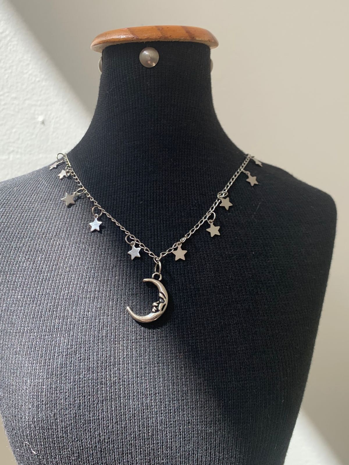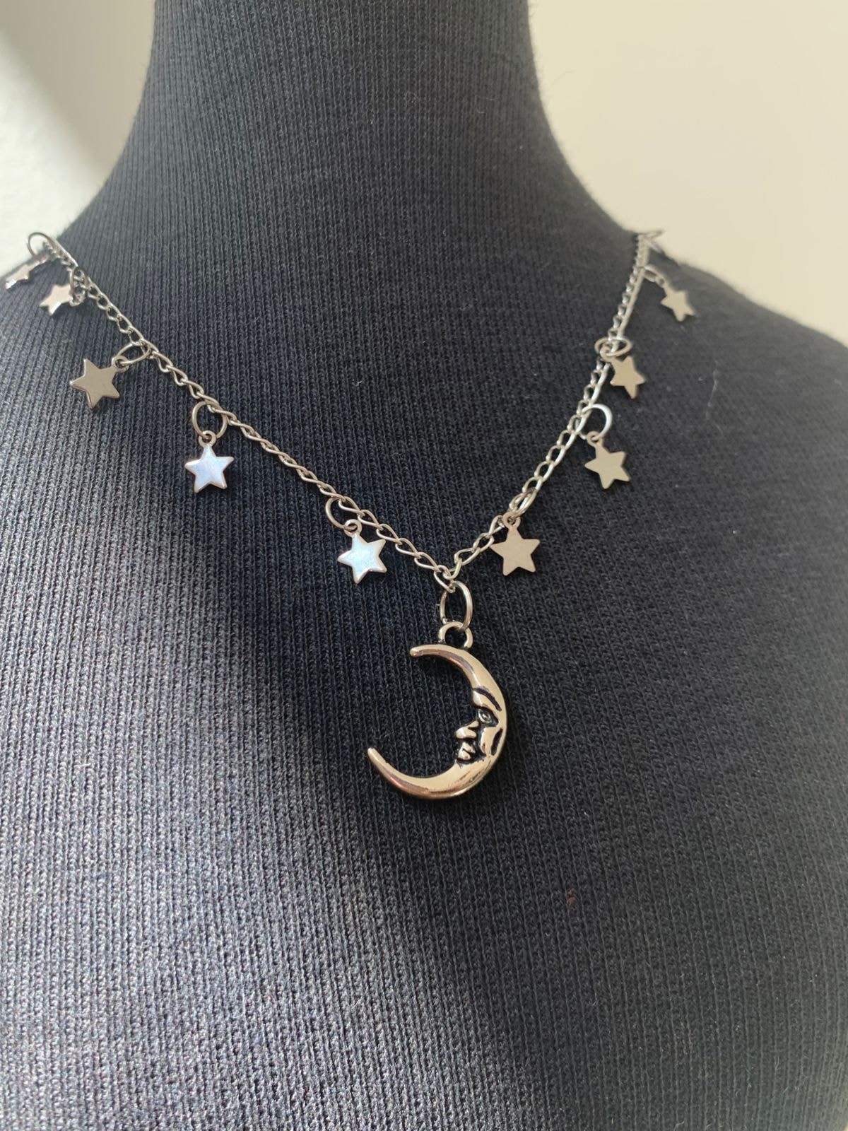 Colar artesanal com pingentes Estrela e Lua.