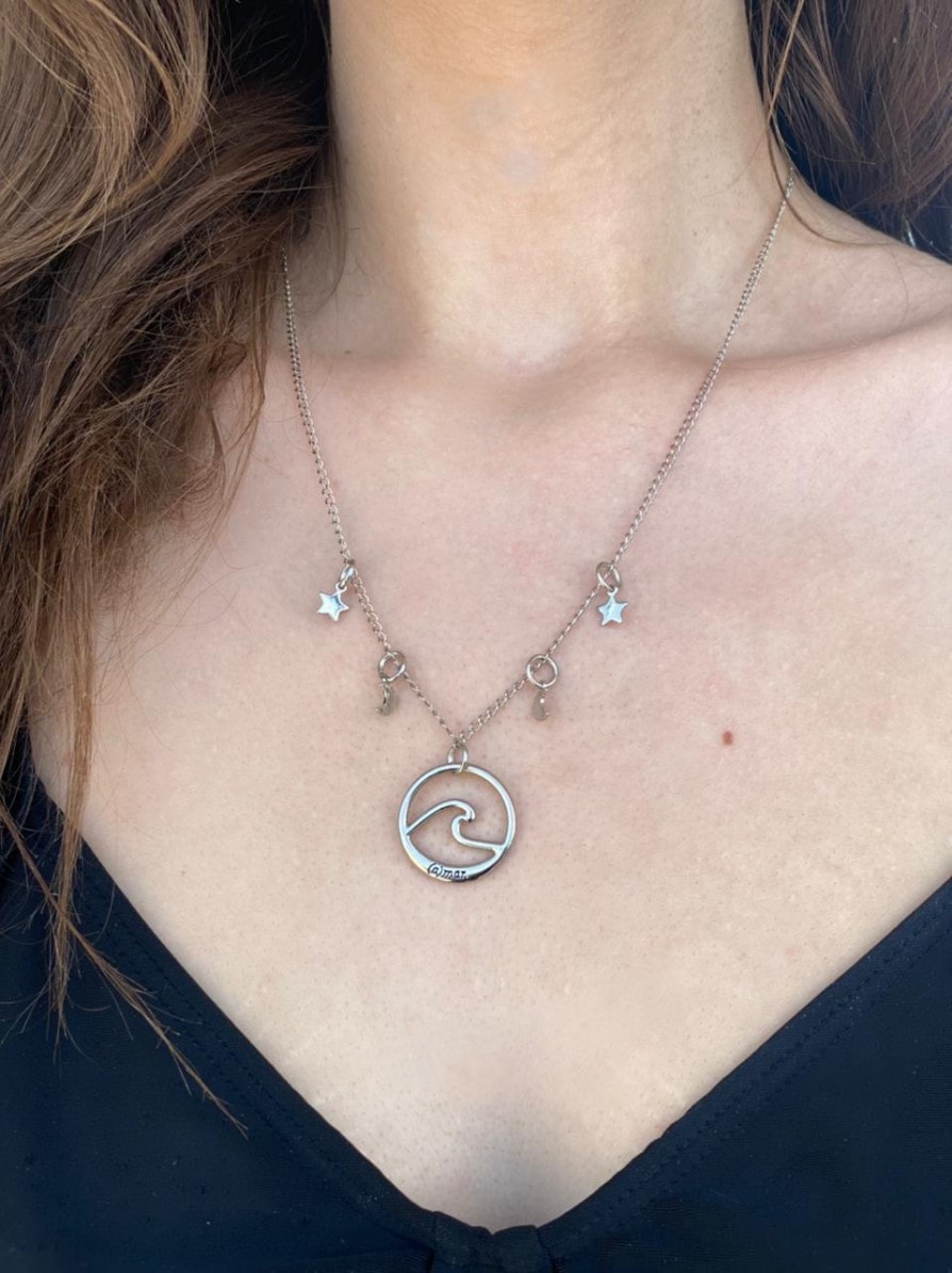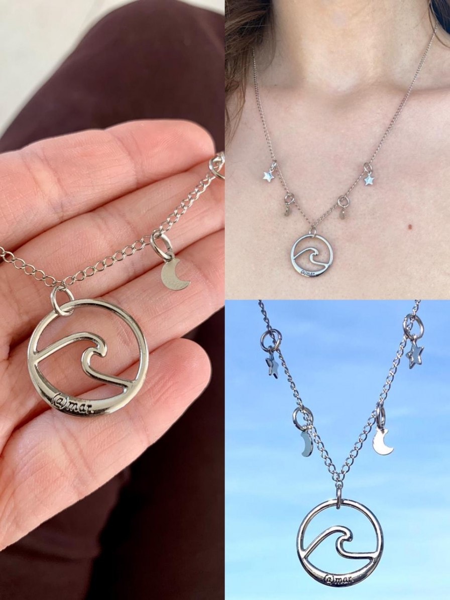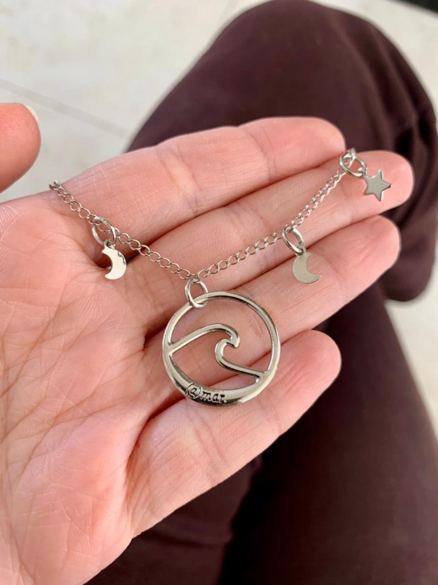 Colar artesanal com pingentes Onda, Lua e Estrela.