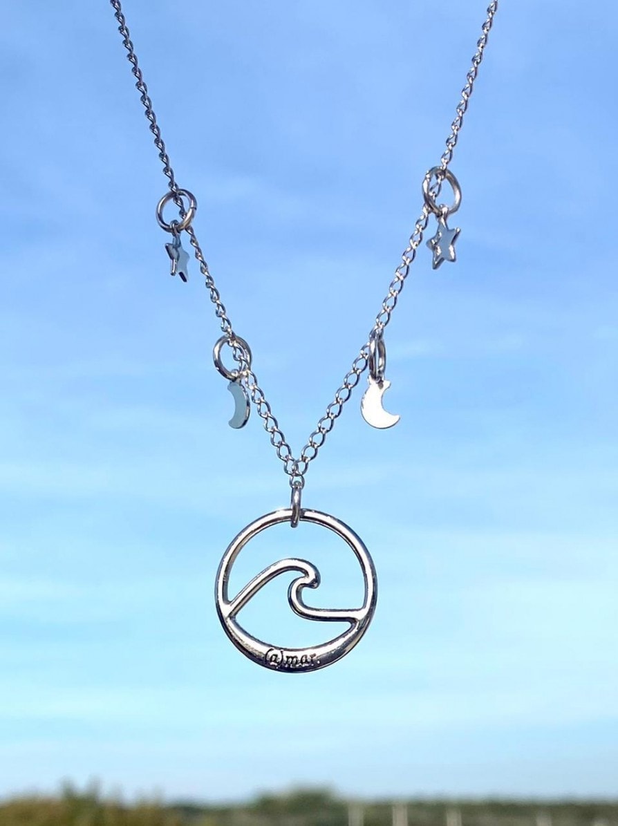 O colar Onda Lua e Estrelas do mar representa essa força imensa da natureza. As ondas do mar trazem ensinamentos sobre poder, efemeridade e movimento. São movidas pelo elemento água, associado à intuição, fluidez e emoção.