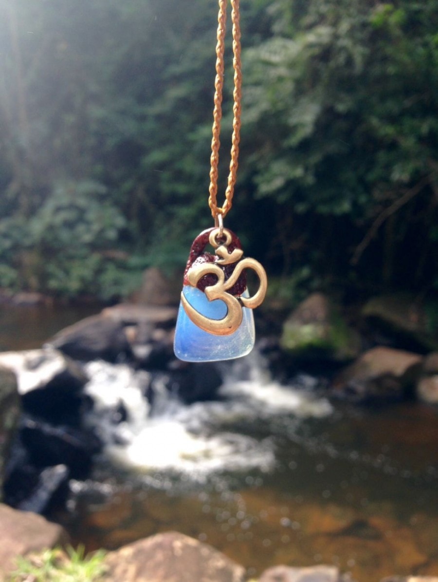 Colar artesanal com pingente feito à mão e Pedra da Lua.