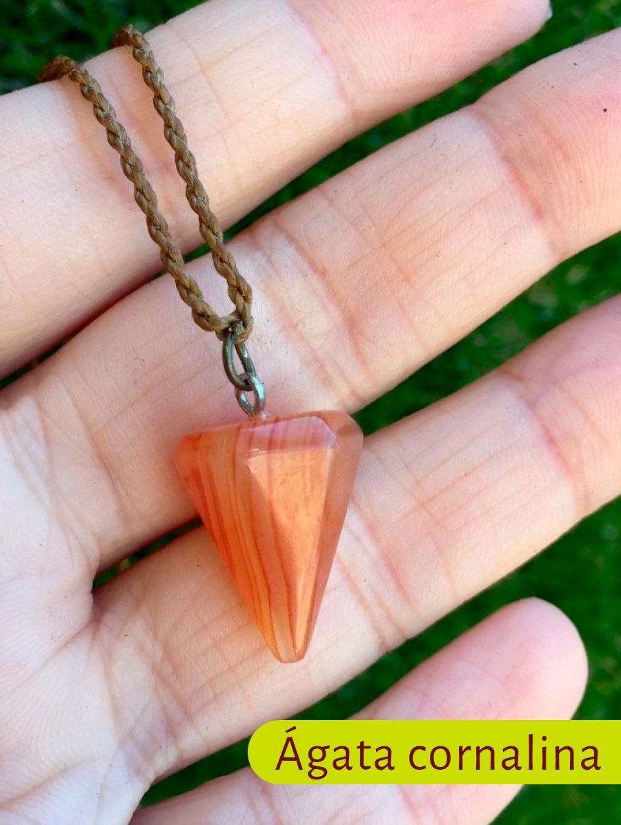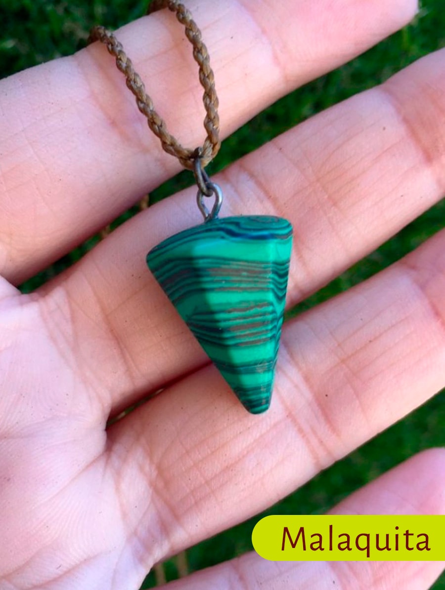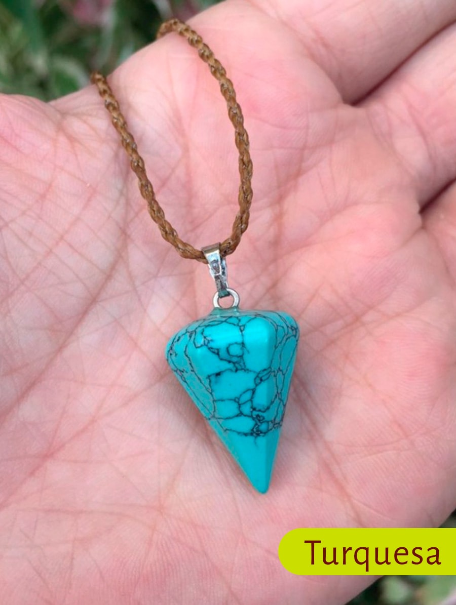 Colar artesanal com pêndulo de Pedra Natural. Cordão trançado à mão.