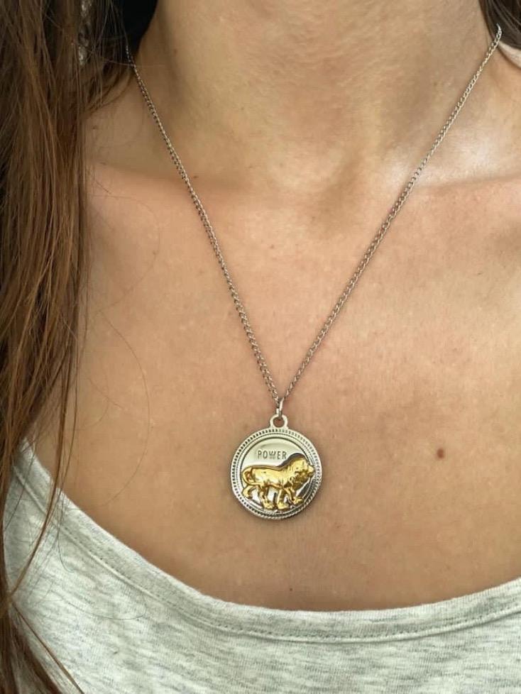 Material: Metal banhado em níquel e ouro 18k. Medida: 40cm de comprimento. Pingente de 2,5cm de diâmetro.