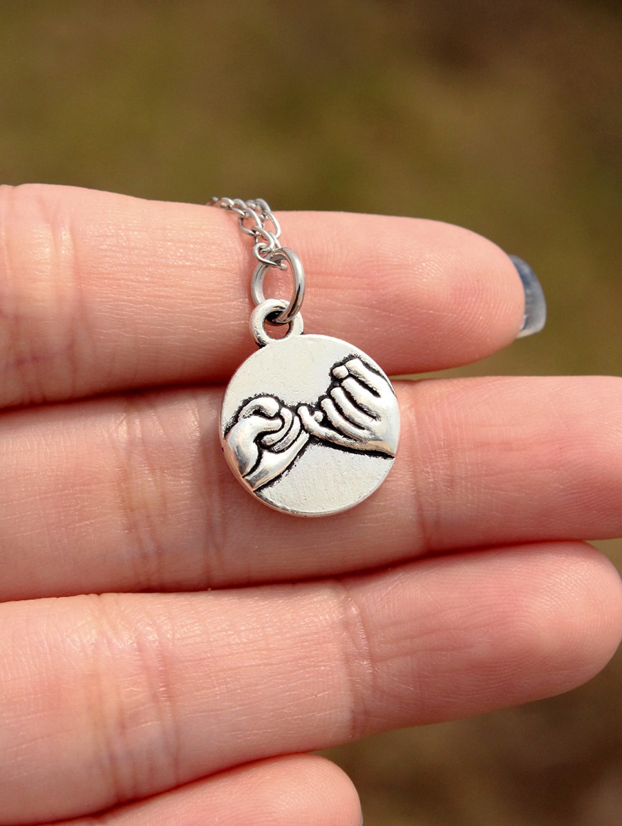 O colar Promise é ilustrado com um gesto que simboliza lealdade, confiança e união.