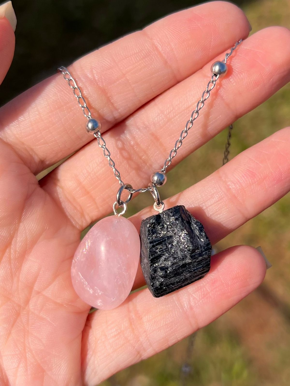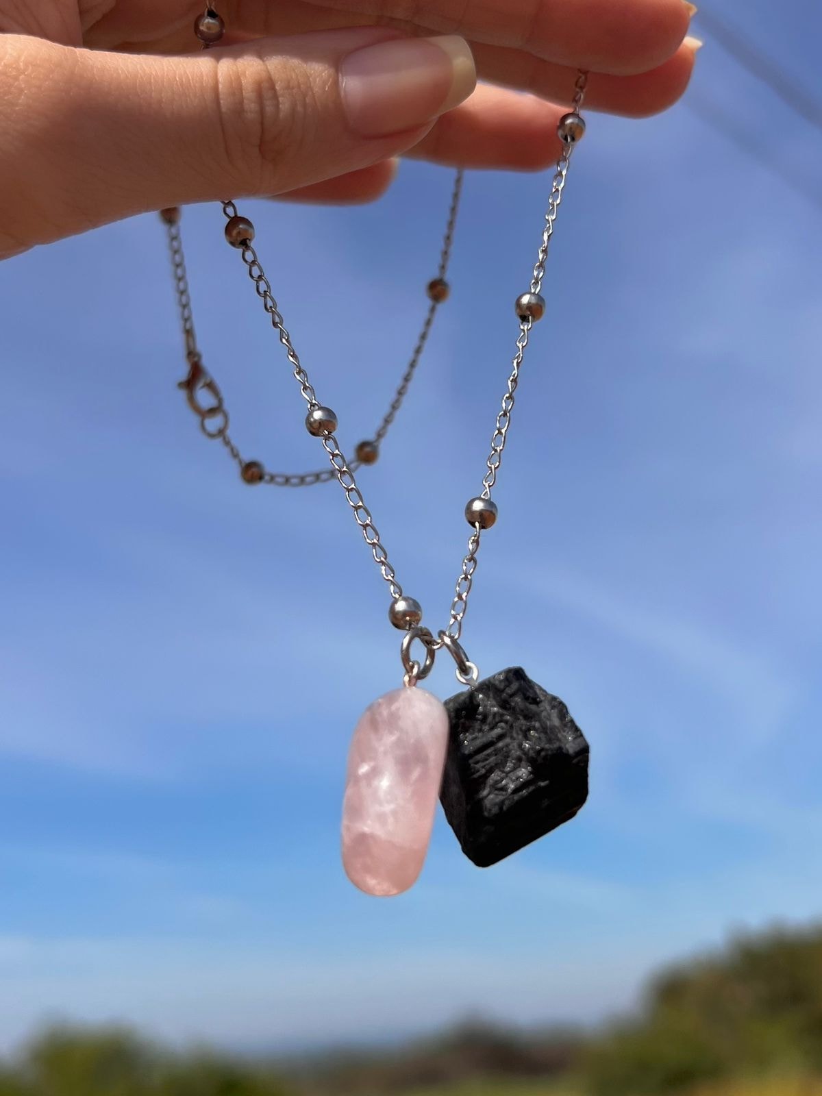 Colar Proteção Emocional - Turmalina e Quartzo Rosa