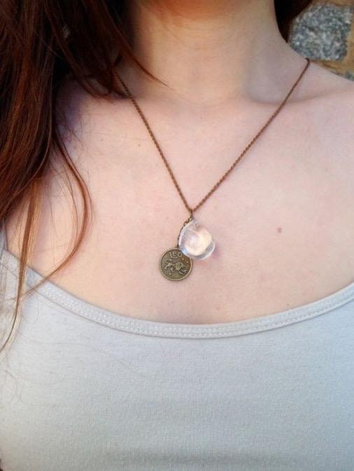 Material: Cordão encerado, pingente de metal e pedra cristal. Medida: 45cm de comprimento.
