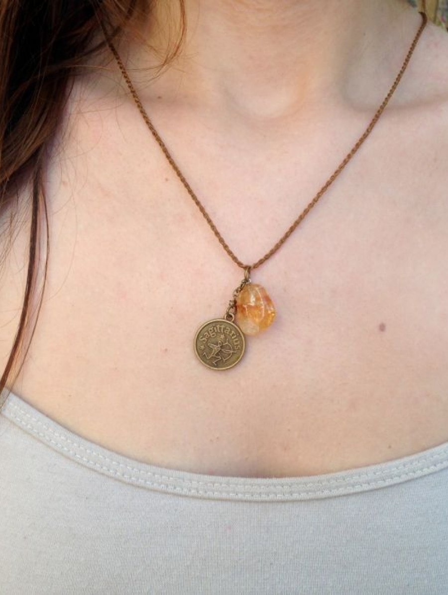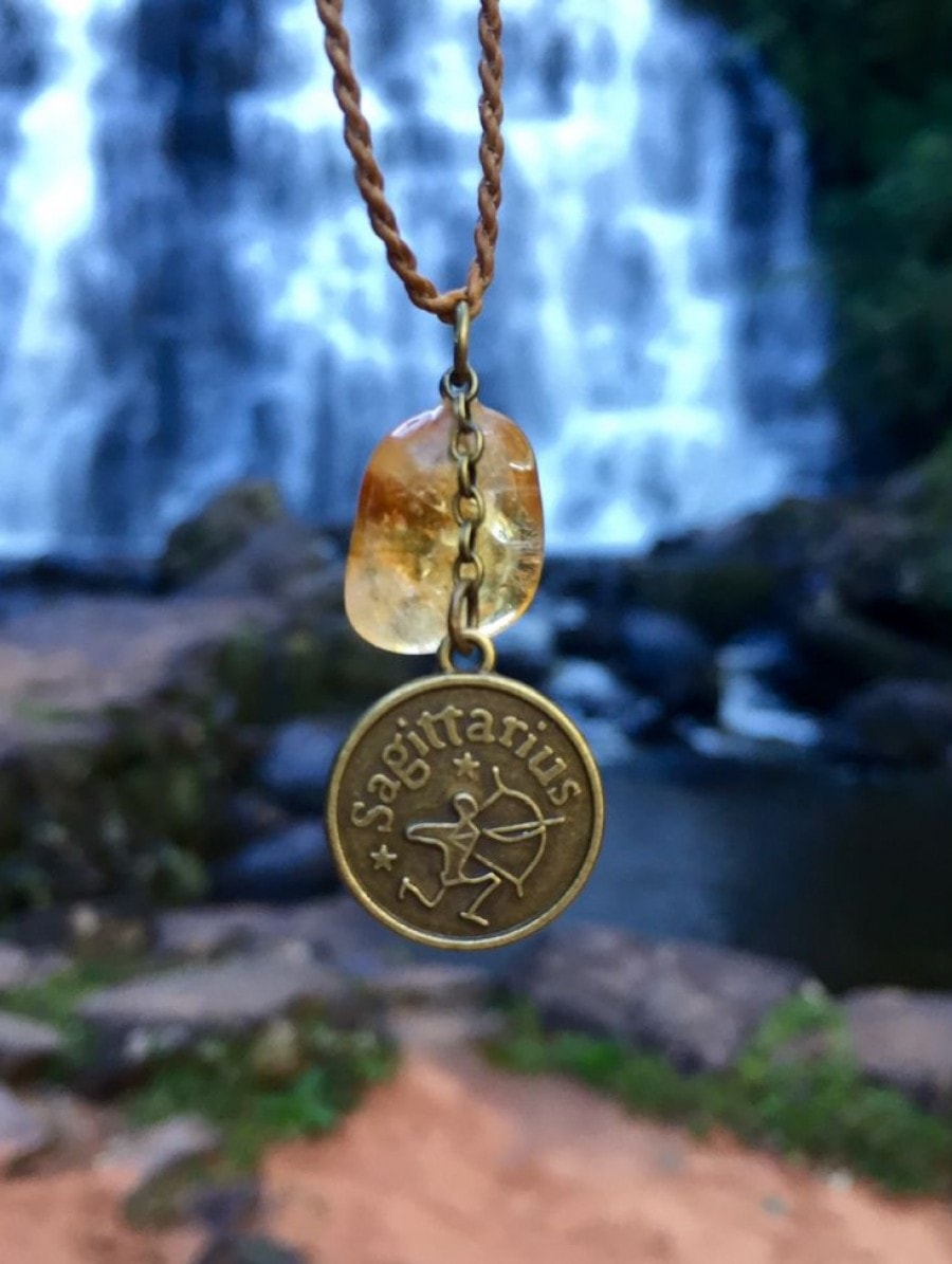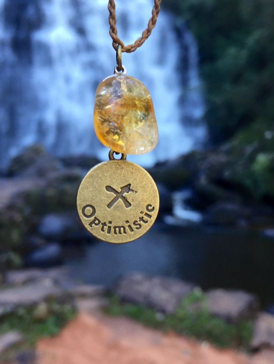 Material: Cordão encerado, pingente de metal e pedra topázio. Medida: 45cm de comprimento.