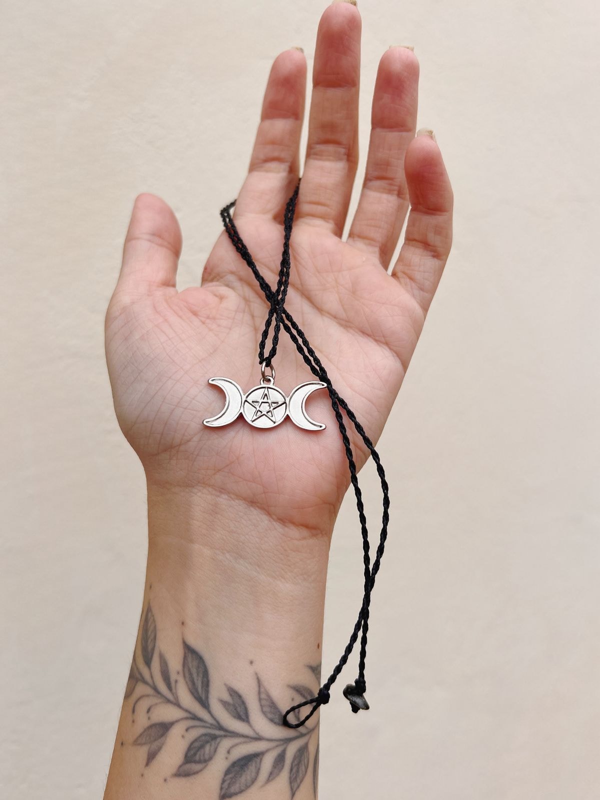 Feito de zamak e cordonê encerado Pingente mede 3cm x 1,5cm, cordão de 45cm com fecho de cristal.