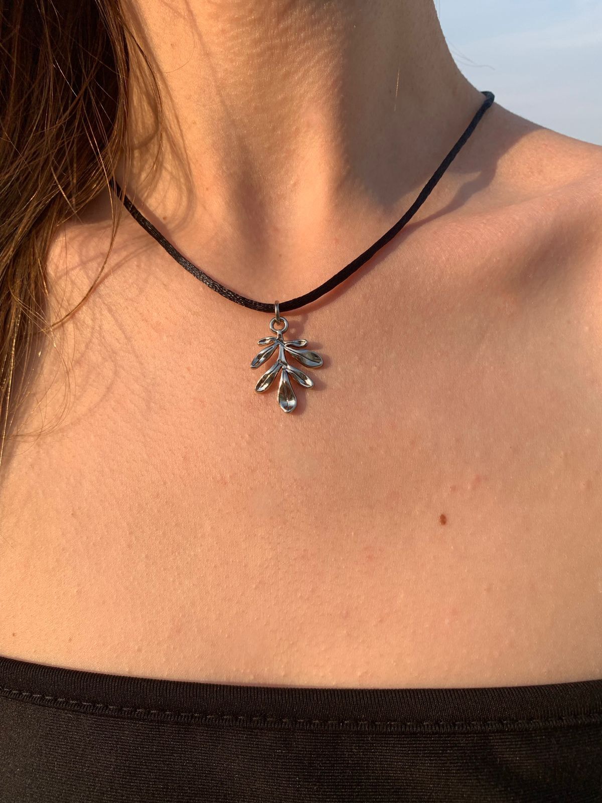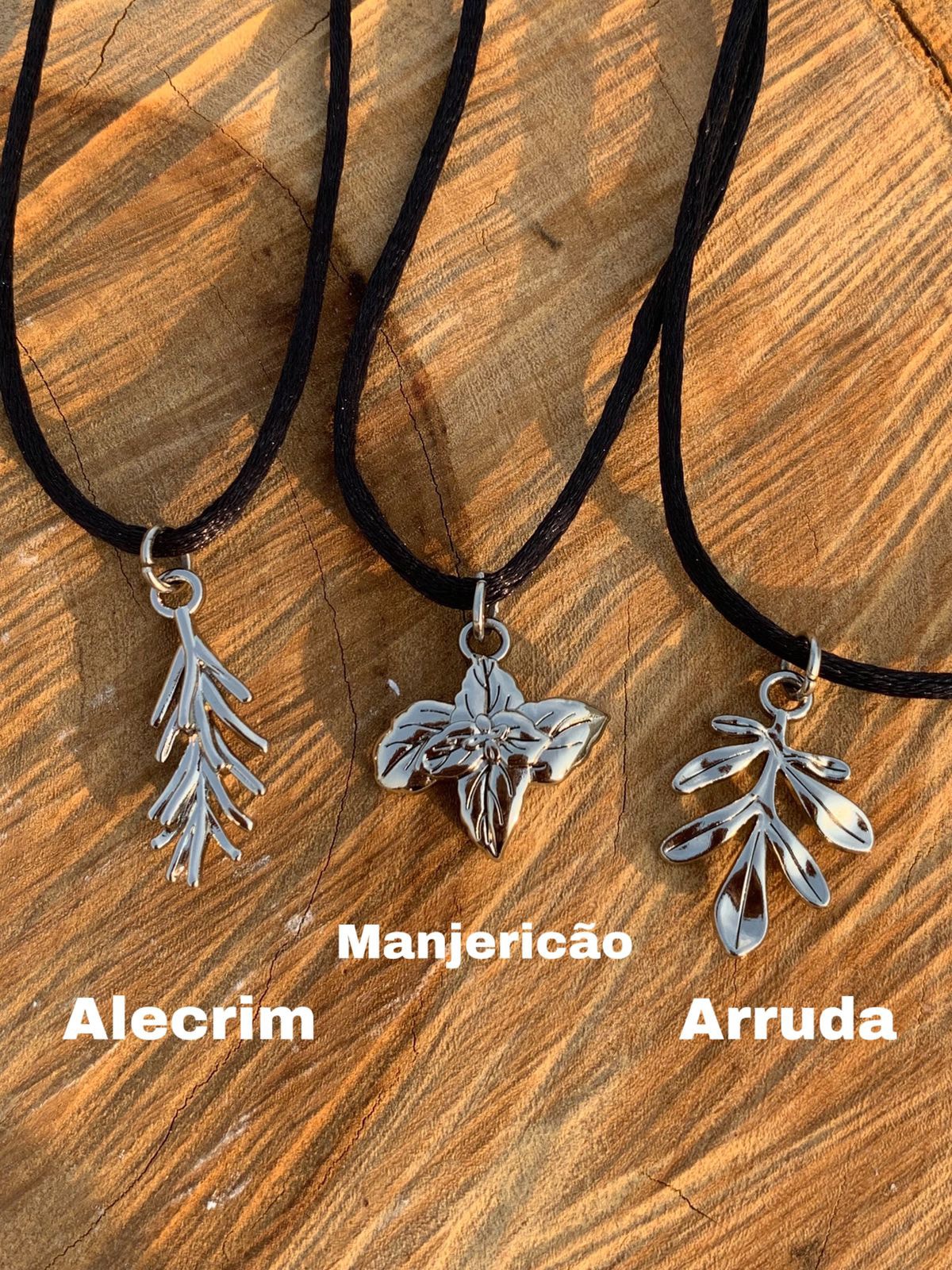 Material: Cordão acetinado e pingente de níquel. Medida: 45cm de comprimento. Regulável.