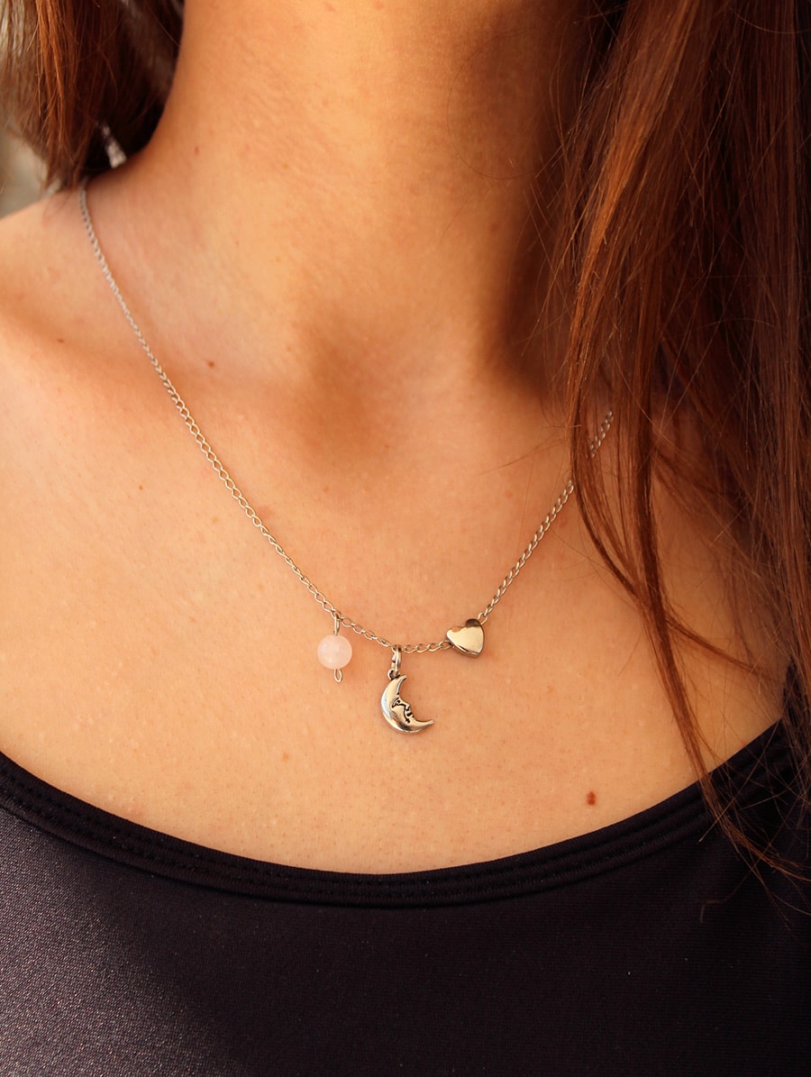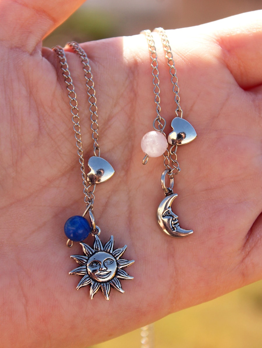 Modelo 1: Sol e pedra Lápis Lazúli Modelo 2: Lua e pedra Quartzo Rosa