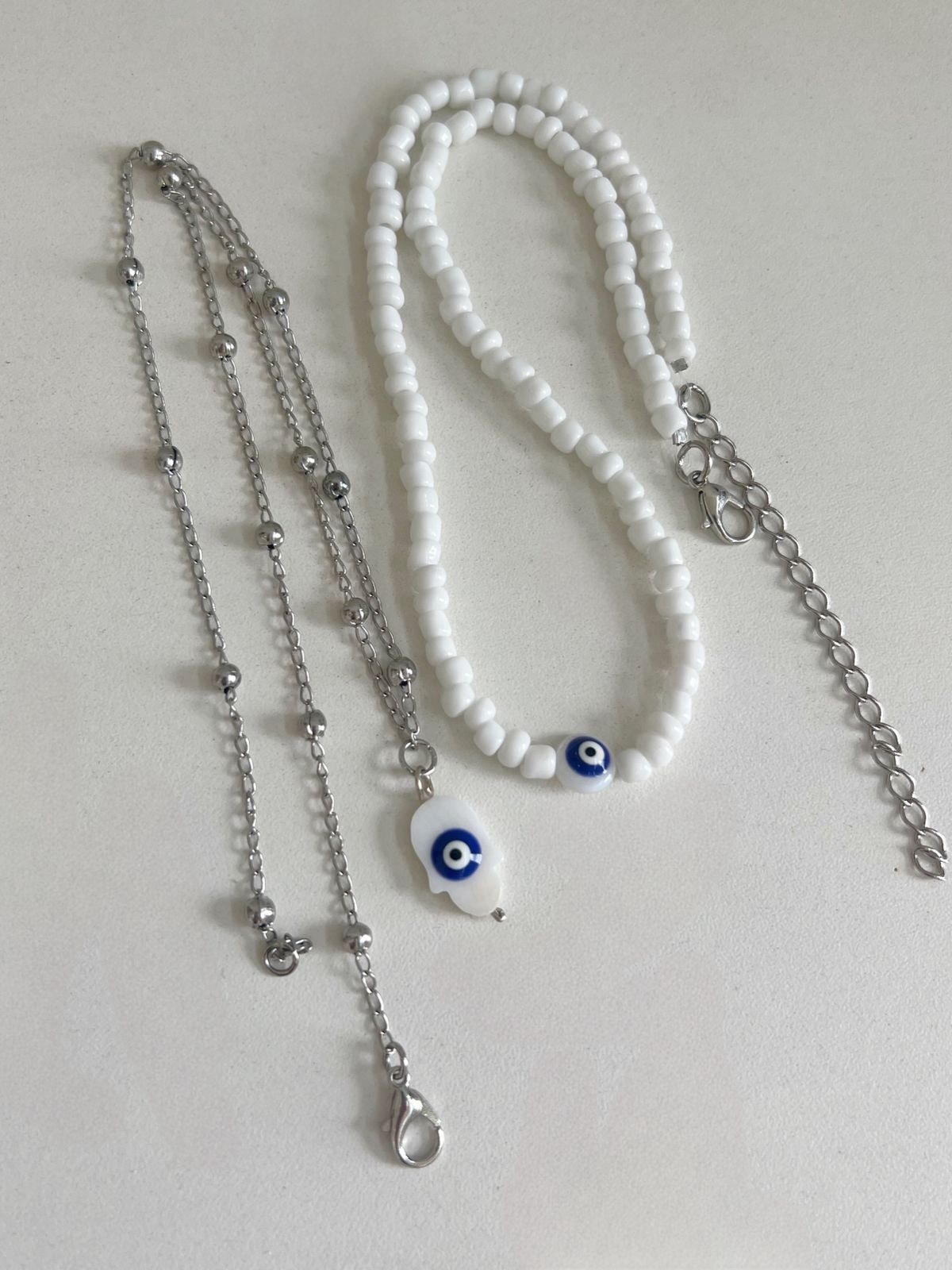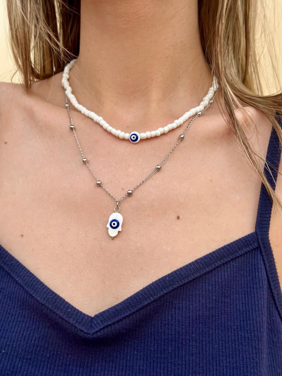 Conjunto 2 Colares Olho Grego e Hamsa - Madrepérola